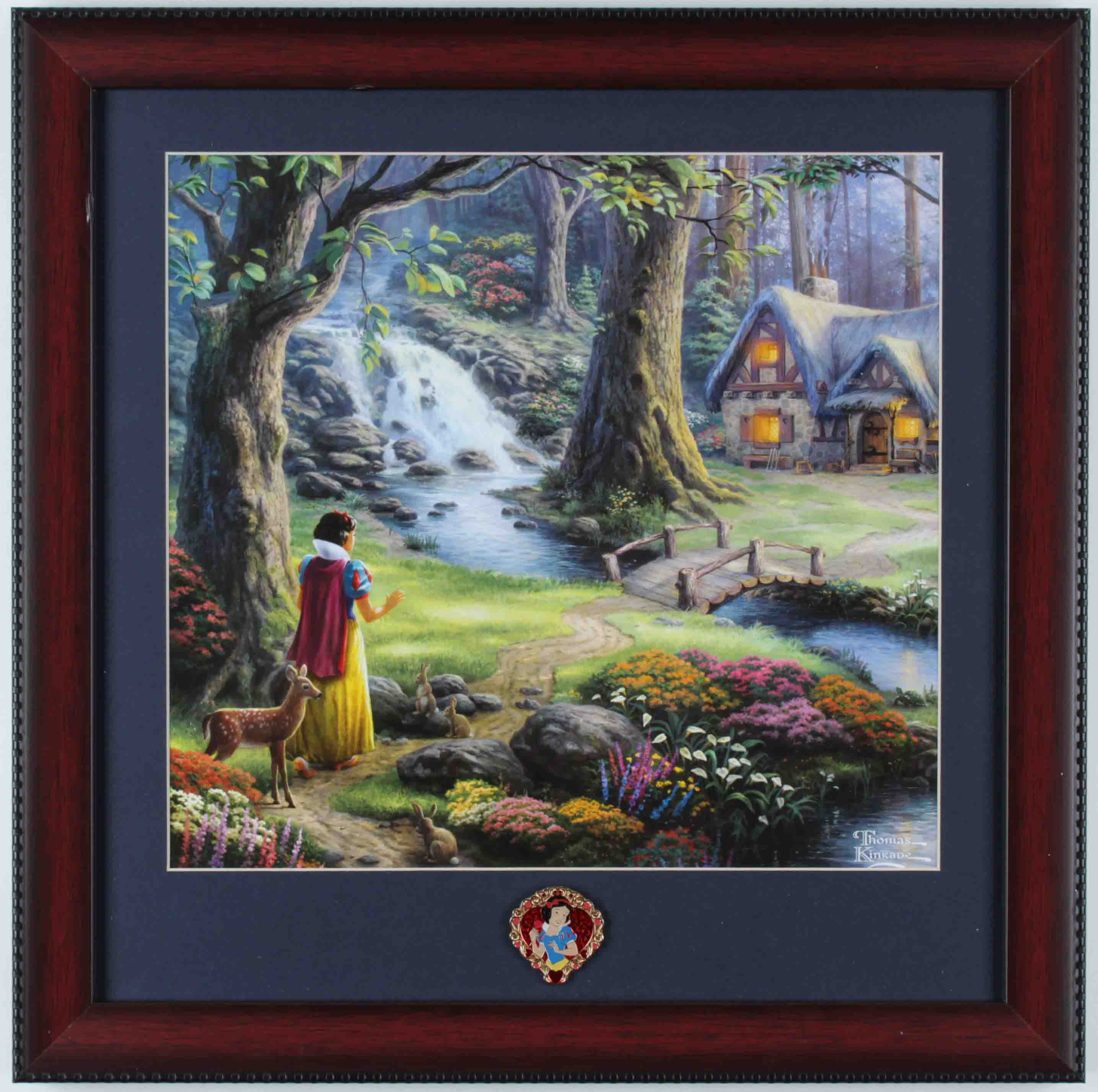 Thomas Kinkade Walt Disney's "Snow White and the Seven Dwarfs" 16x16 Custom Framed Print Display With Snow White Pin