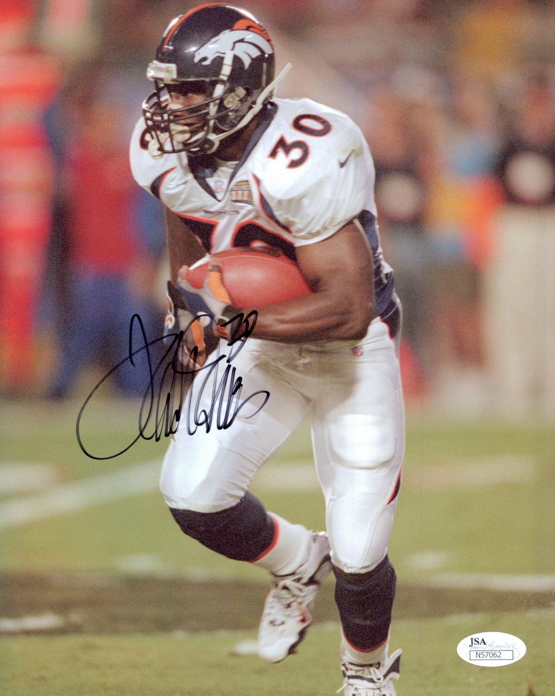 Photo measures 8 " x 10 " in size and has been hand-signed in black felt-tip pen by Terrell Davis (Broncos). The autograph includes an official James Spence Authentication (JSA) hologram and matching COA for authenticity purposes.