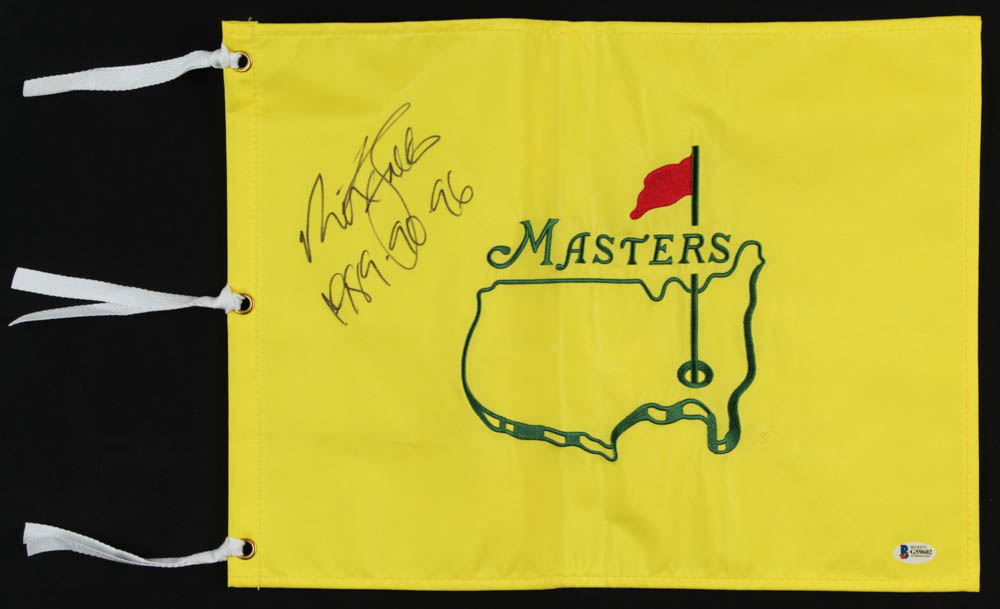 Nick Faldo Signed 13x17.5 Masters Flag Inscribed "1989-90-96" (Beckett COA)