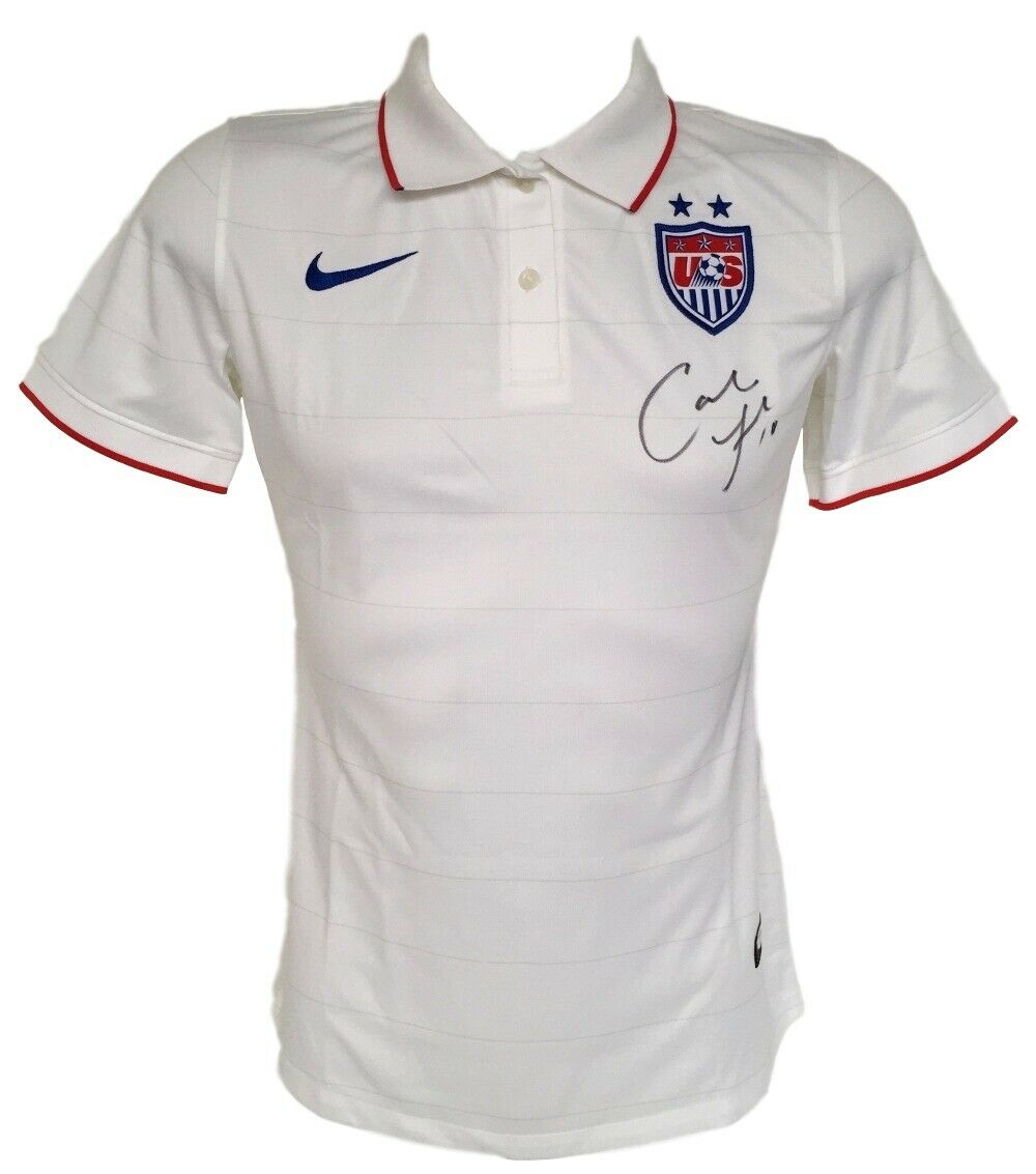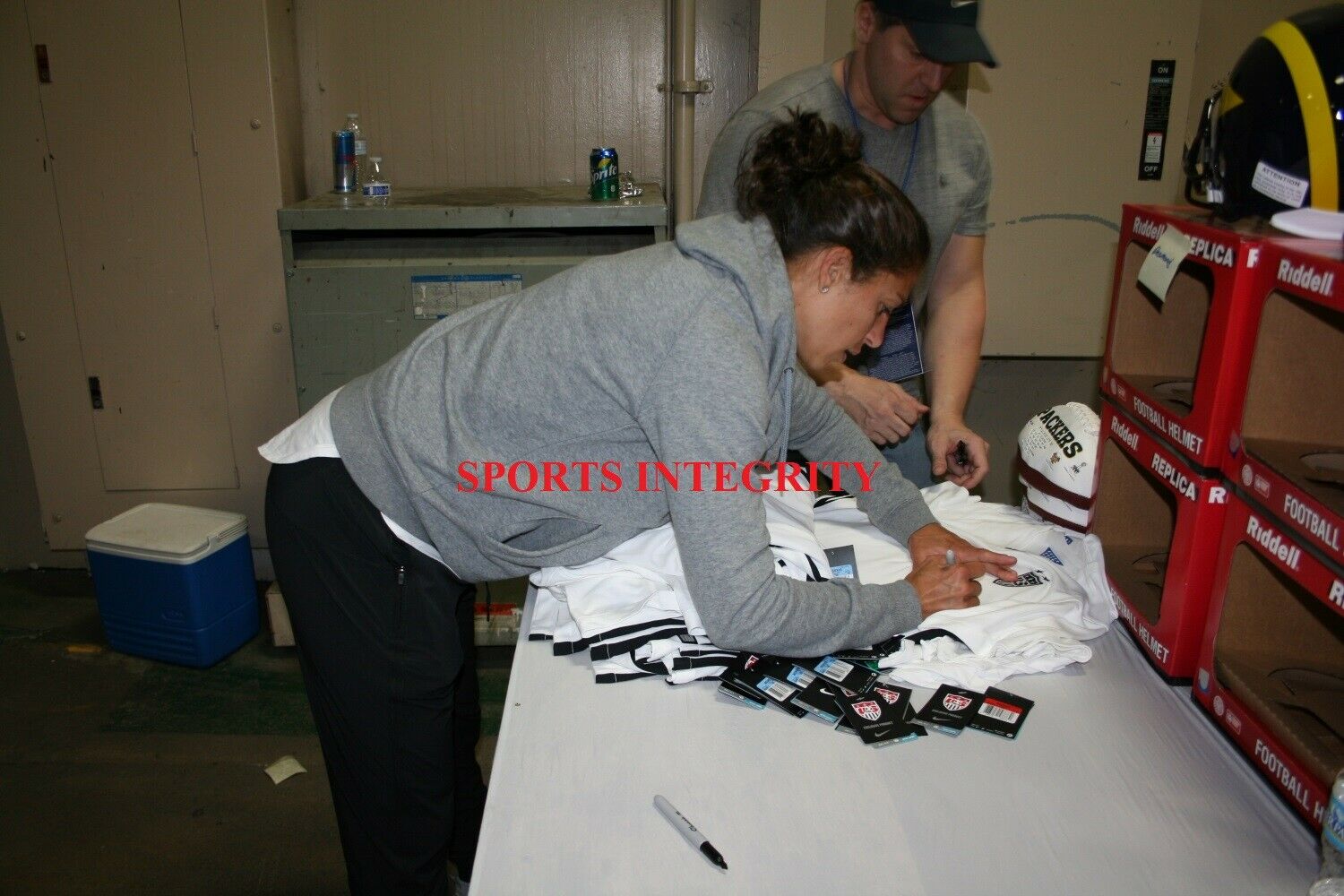 Nike on-field style jersey. Everything is sewn on, size L. Has been hand-signed by Carli Lloyd.