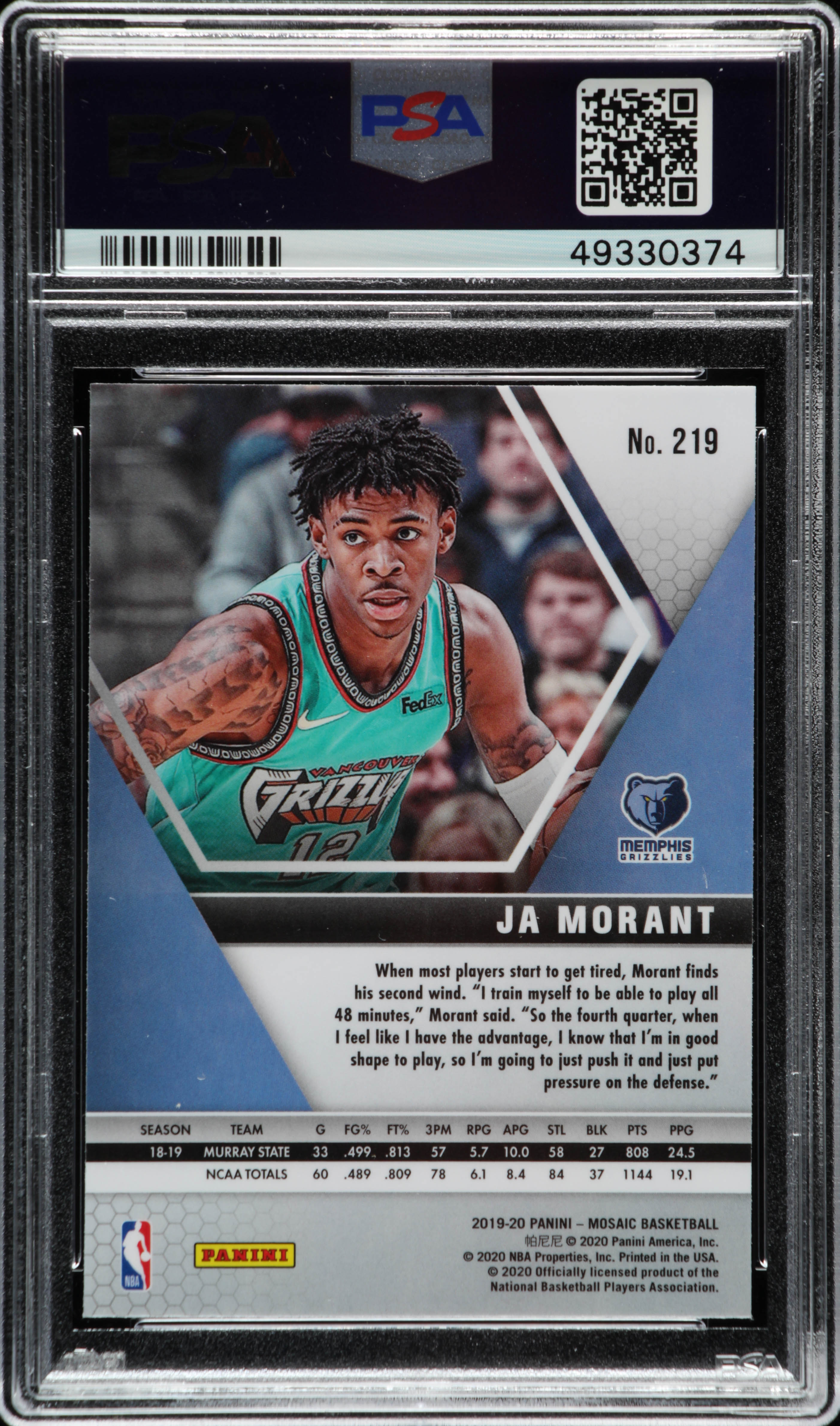Ja Morant 2019-20 Panini Mosaic #219 RC (PSA 10)
