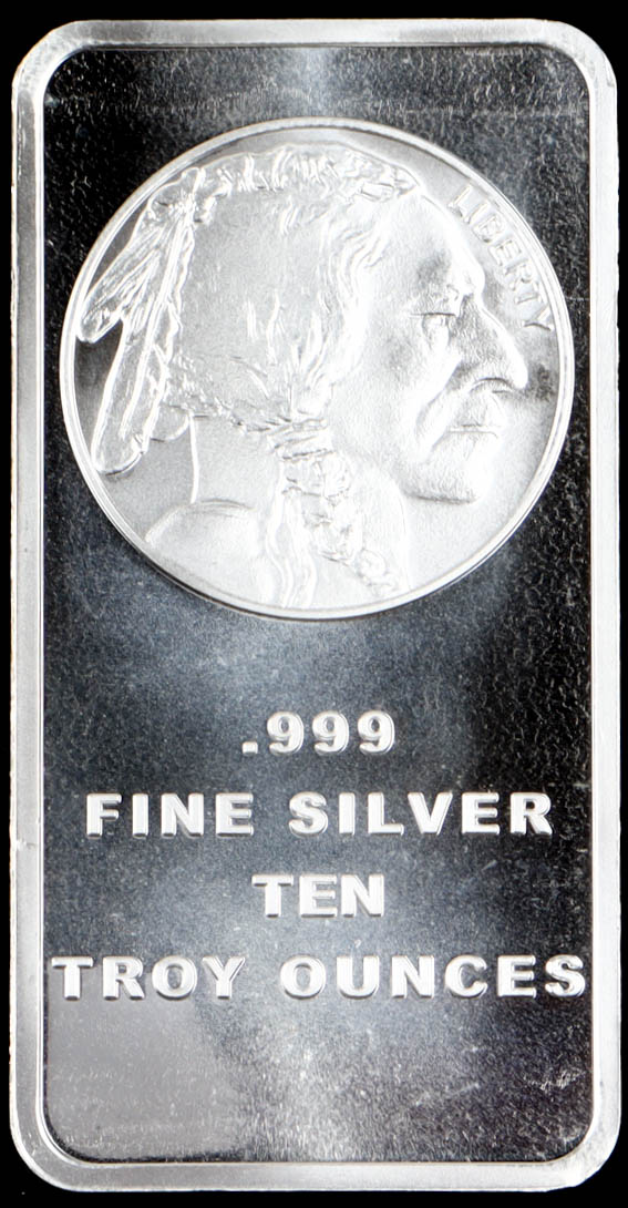 10 Troy Ounce Indian Head .999 Fine Silver Bullion Bar