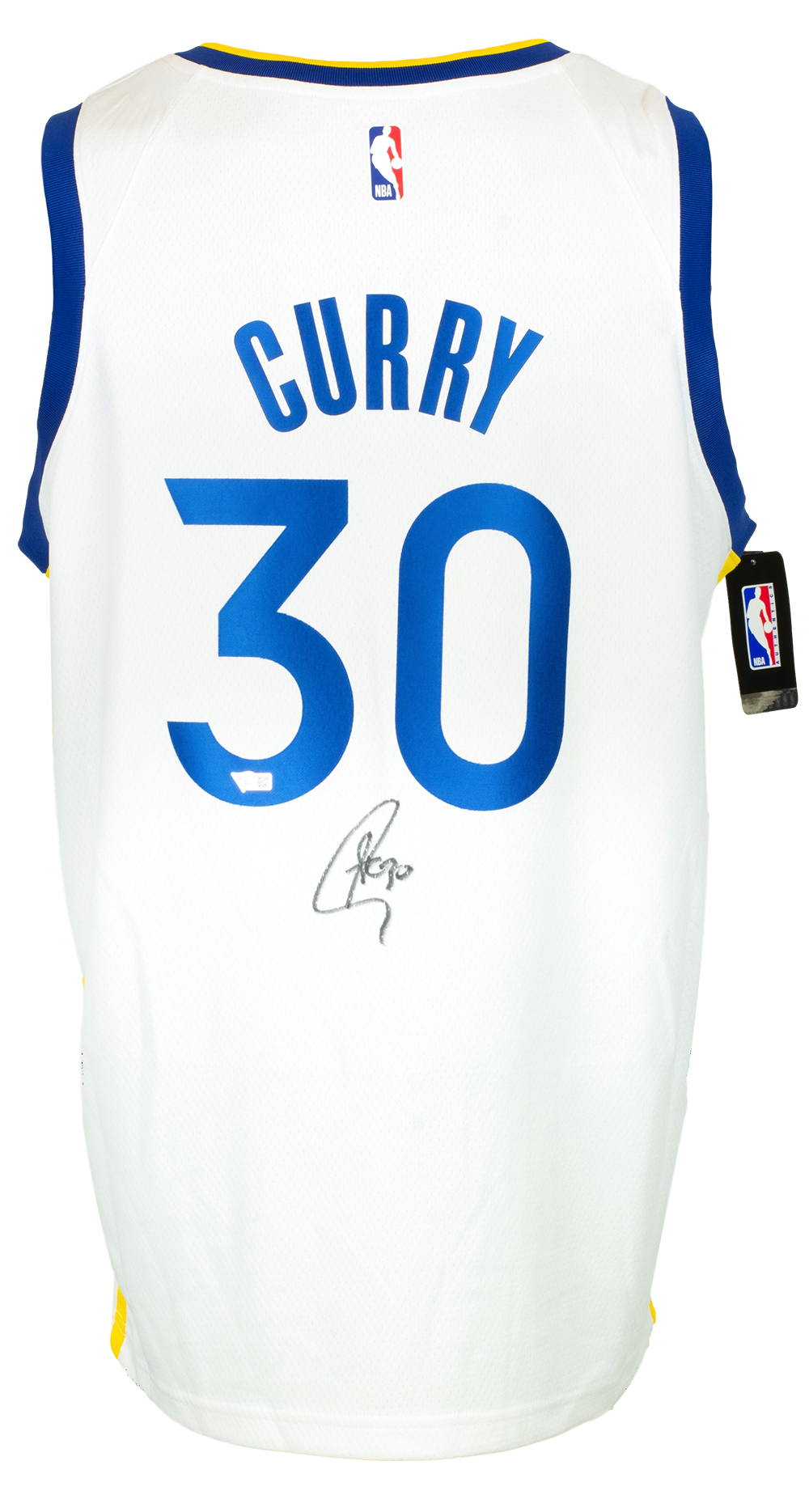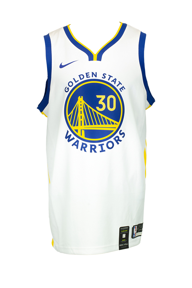 Nike on-court style jersey. Everything is printed on, size XL. Hand-signed by Stephen Curry (Golden State Warriors).