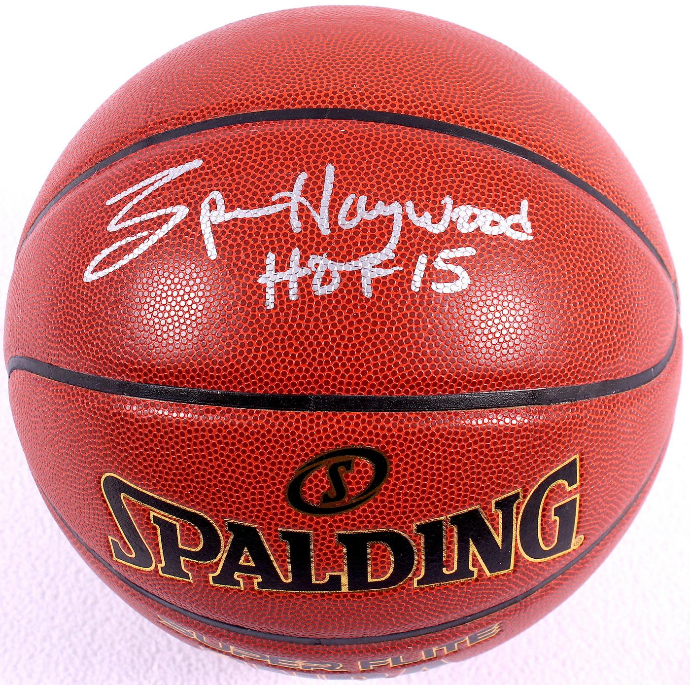 Spalding indoor / outdoor basketball. Hand-signed and inscribed in silver paint pen by Spencer Haywood (SuperSonics HOF). The autograph includes an official James Spence Authentication (JSA) hologram and matching COA for authenticity purposes. The signing of this item was witnessed by JSA.