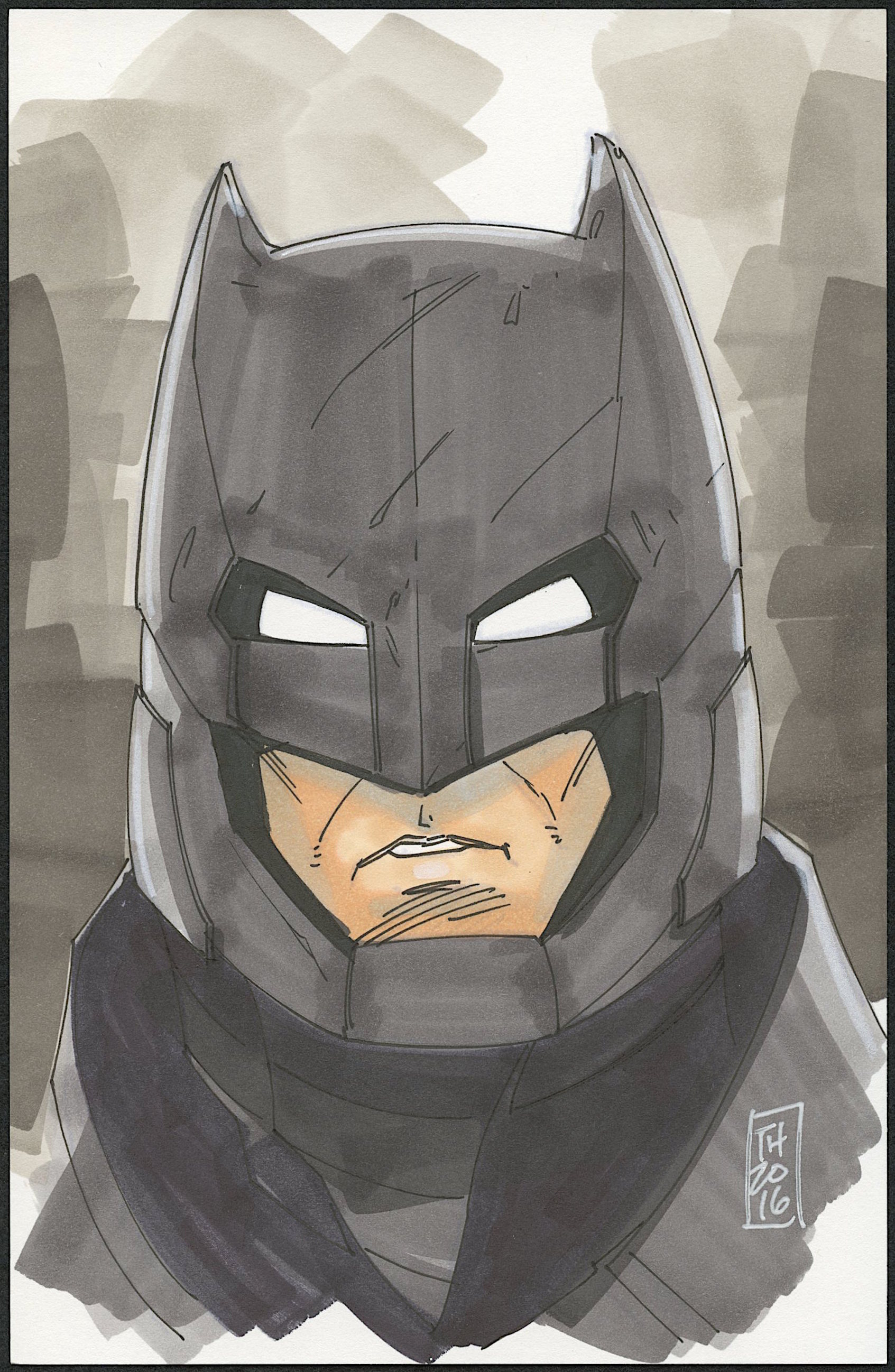 Batman "Armor" 1/1 ORIGINAL 5.5" x 8.5" Color Drawing on Paper Signed by Tom Hodges