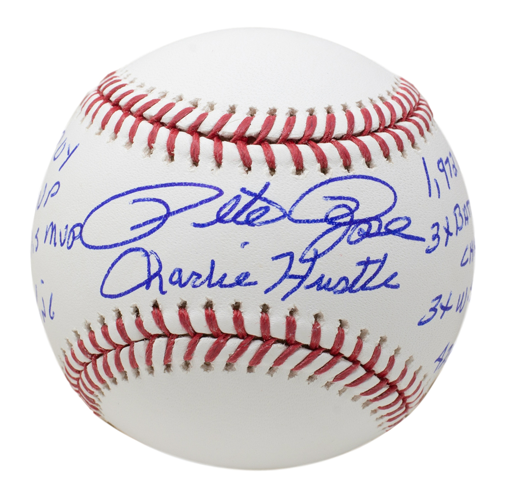 Rawlings Official Major League Baseball. Hand-signed and inscribed by Pete Rose (Cincinnati Reds).