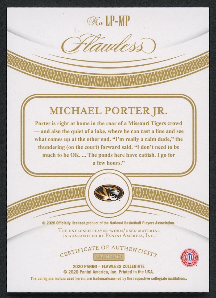 Michael Porter Jr. 2020-21 Panini Flawless Collegiate Legacy Patches #30 - #13/20