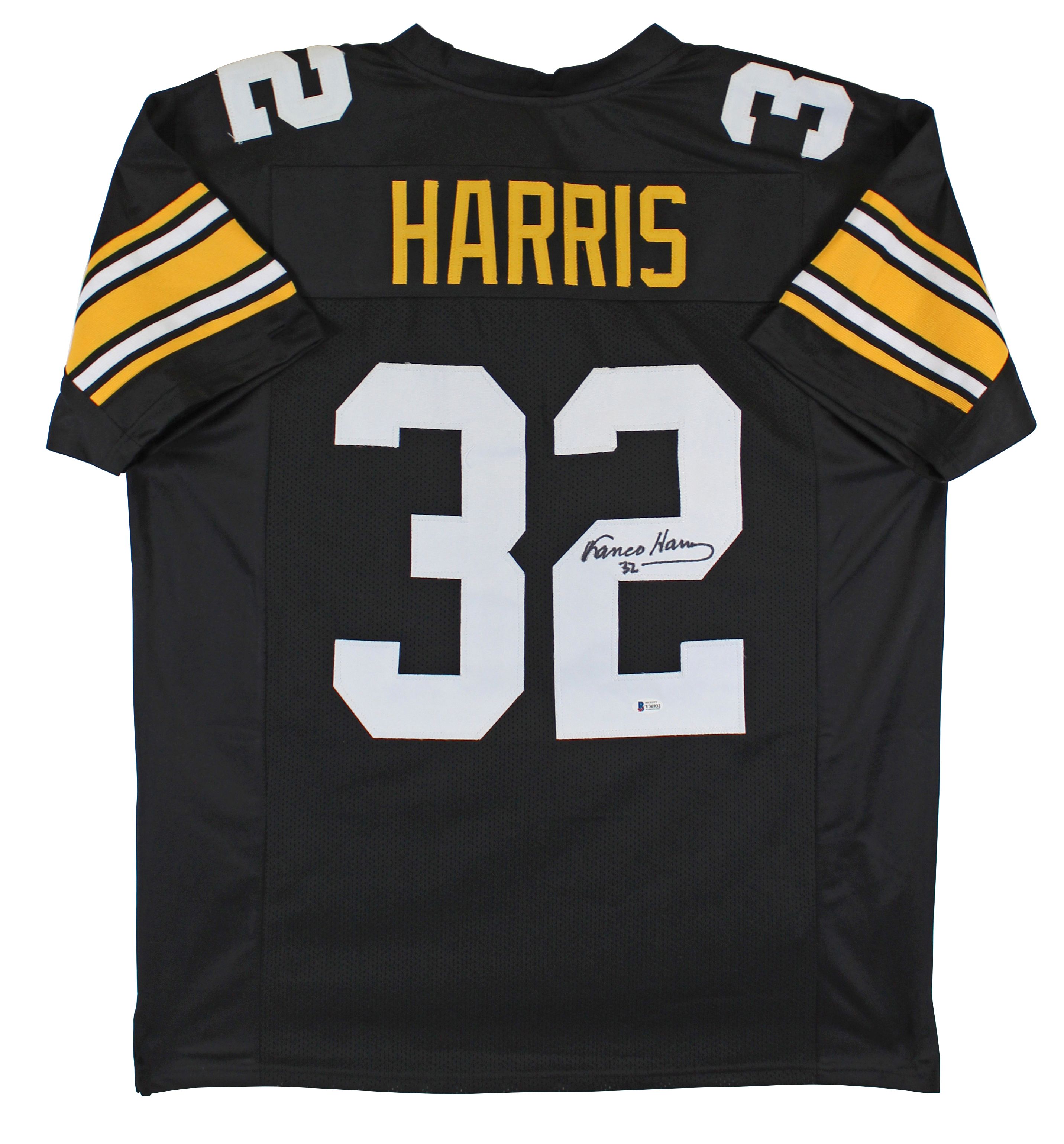 Custom on-field style jersey. Everything is sewn on, size XL. Hand-signed by Franco Harris (HOF).