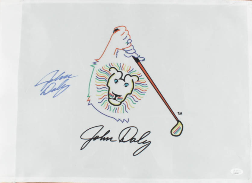 Daly pin flag measures approximately 13" x 19" in size and has been hand-signed by John Daly.