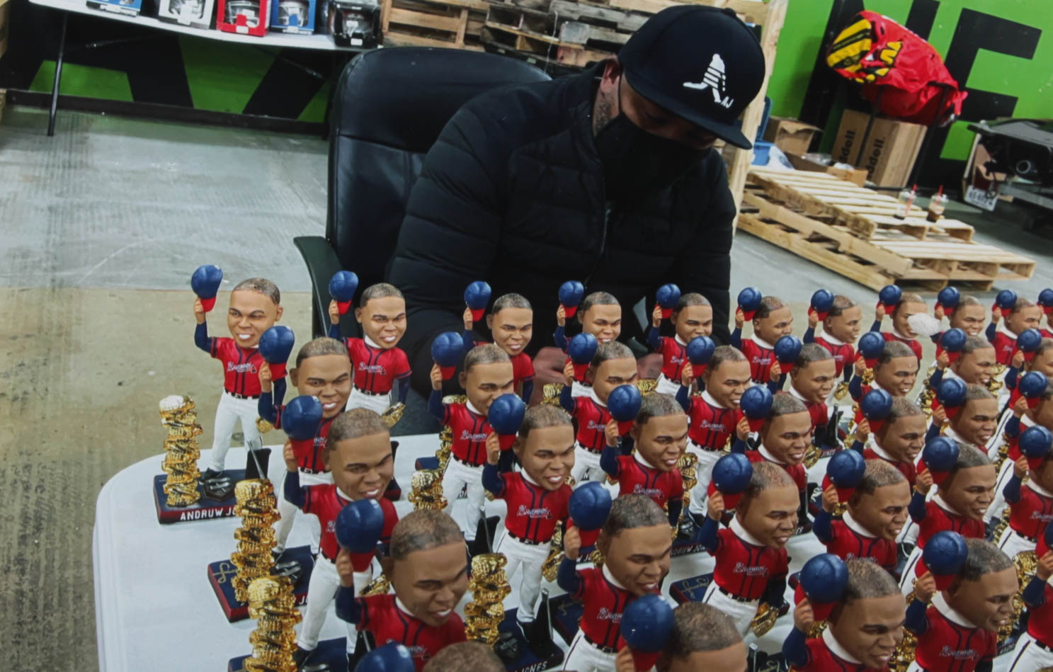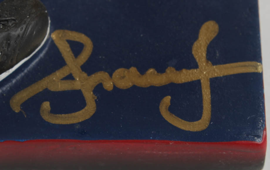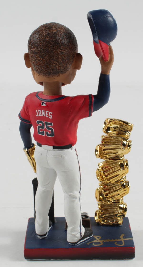 Cooperstown Collection Atlanta Braves Gold Glove bobblehead measures approximately 7" tall. Hand-signed by Andruw Jones.