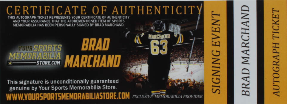 The lot / autograph(s) includes an official Your Sports Memorabilia Store Brad Marchand hologram and COA for authenticity purposes.
