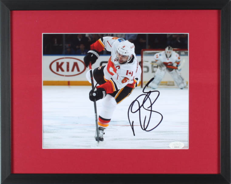 Custom framed display measures approximately 15" x 12" in size and has been hand-signed by Mark Giordano (Calgary Flames).
