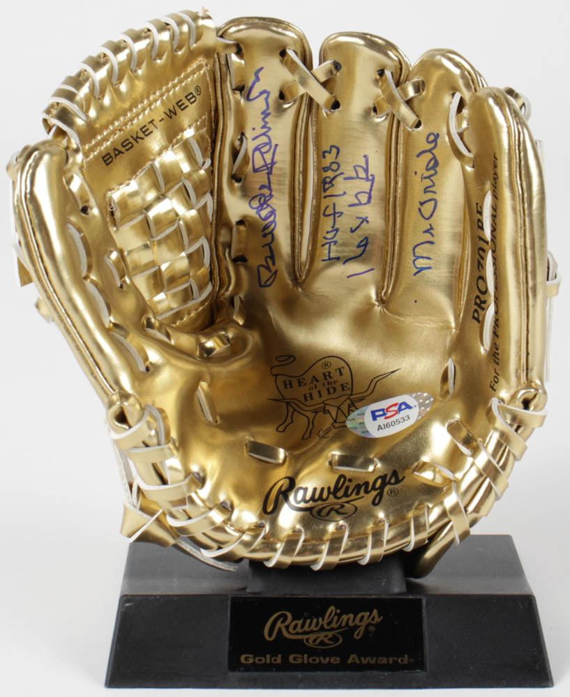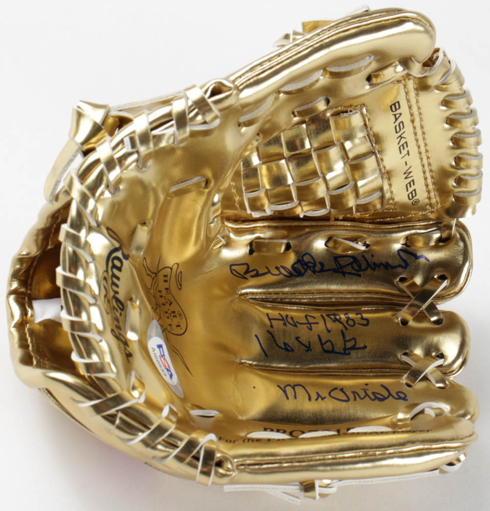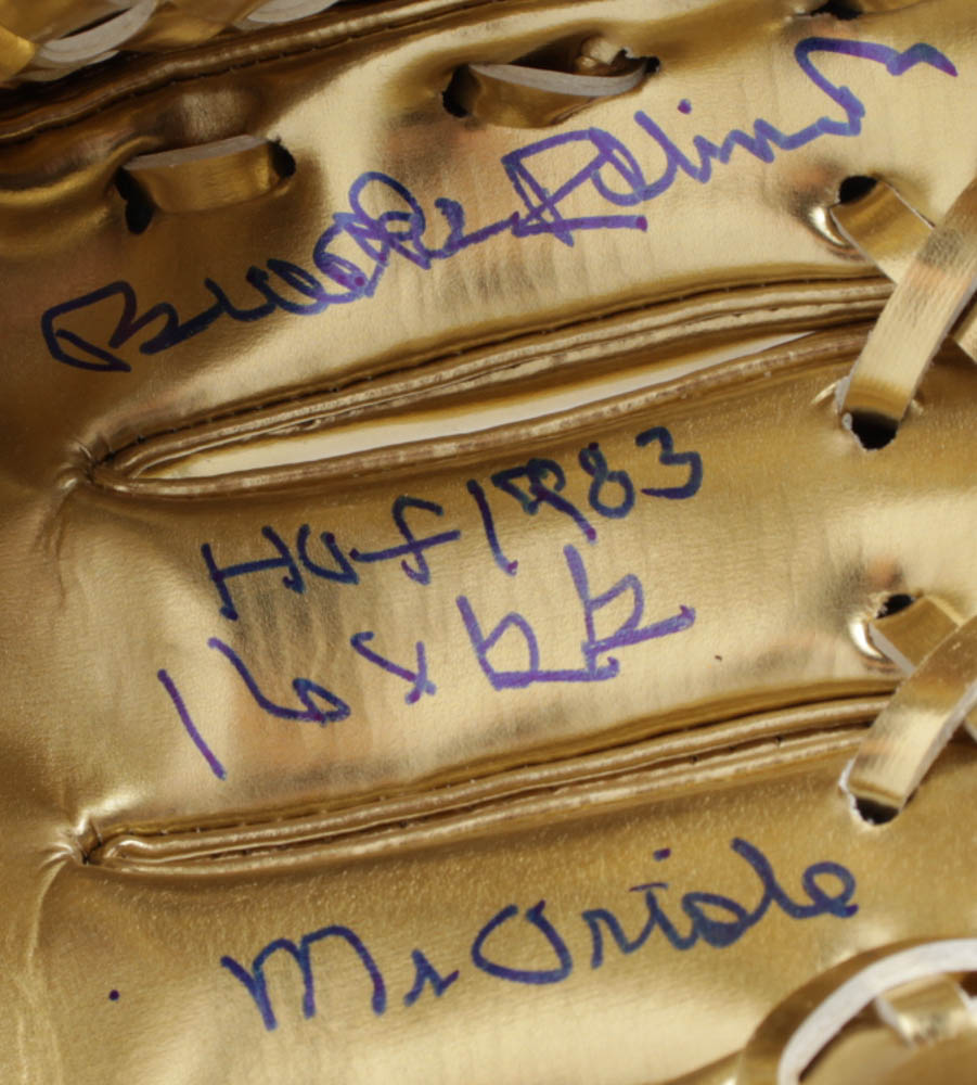 Brooks Robinson Signed Mini Golden Glove with Multiple Inscriptions with Display Stand (PSA COA)