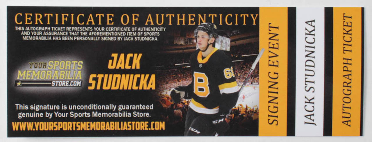 The lot / autograph(s) includes an official Your Sports Memorabilia Store Jack Studnicka hologram and COA for authenticity purposes.