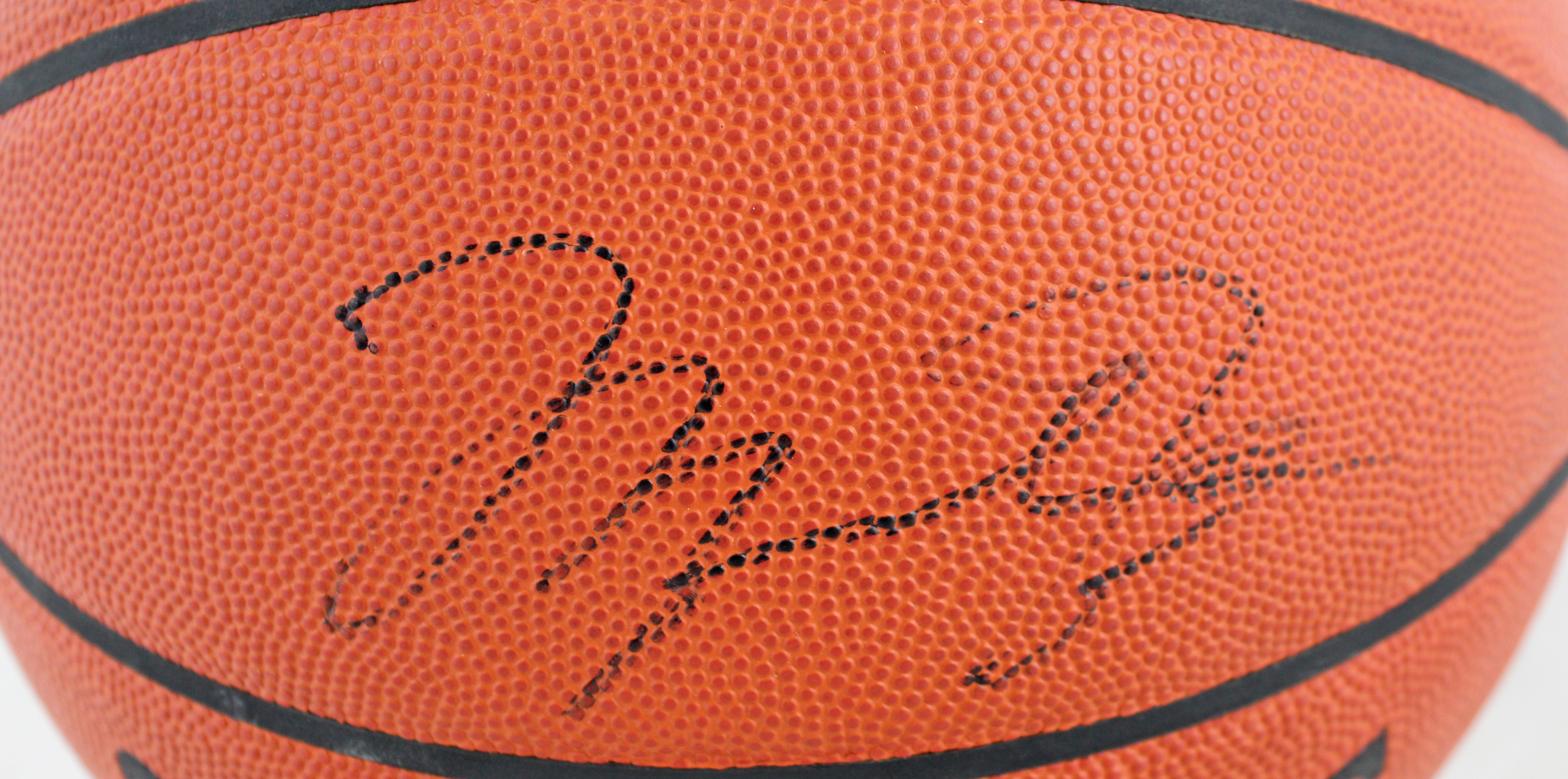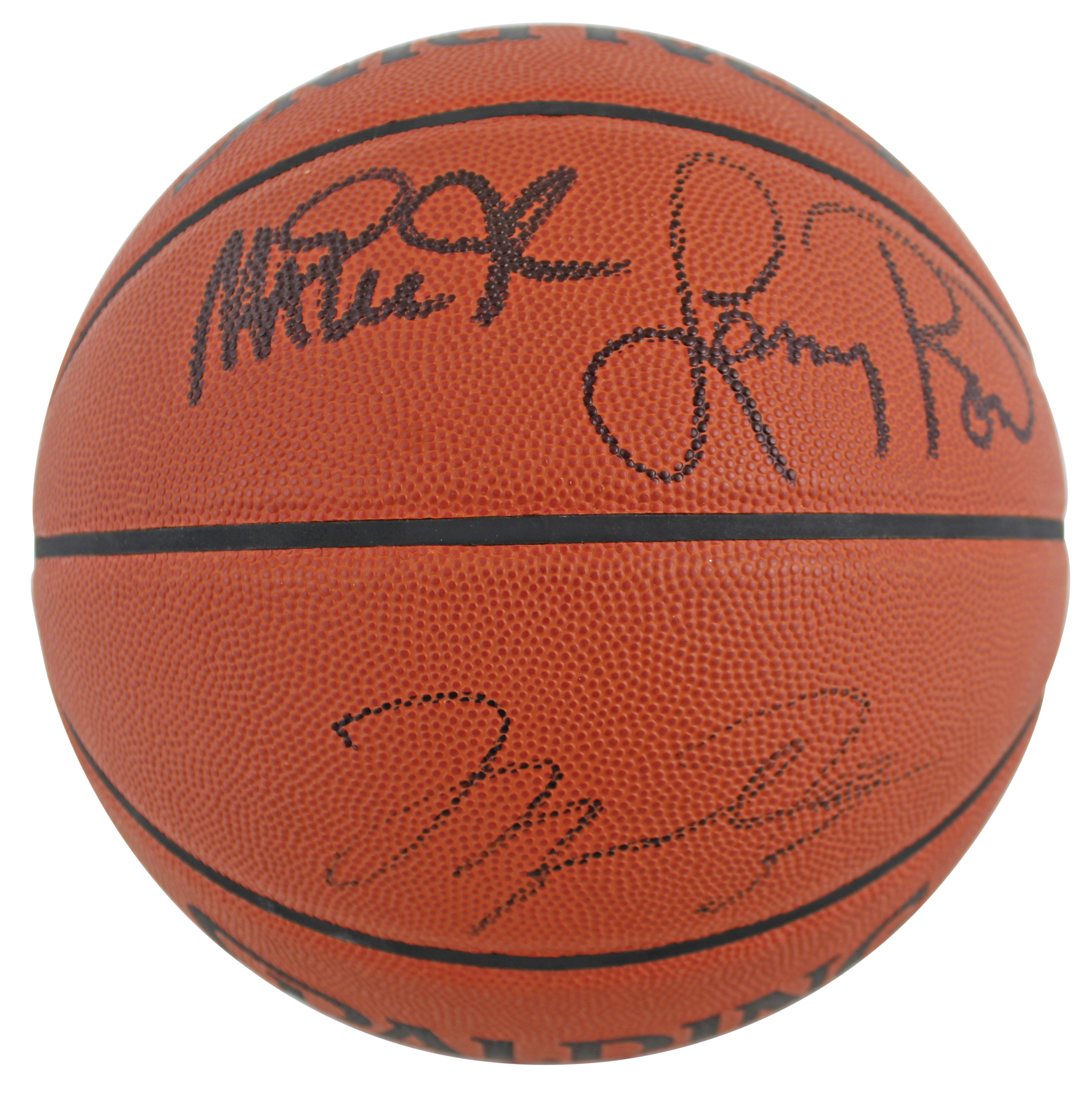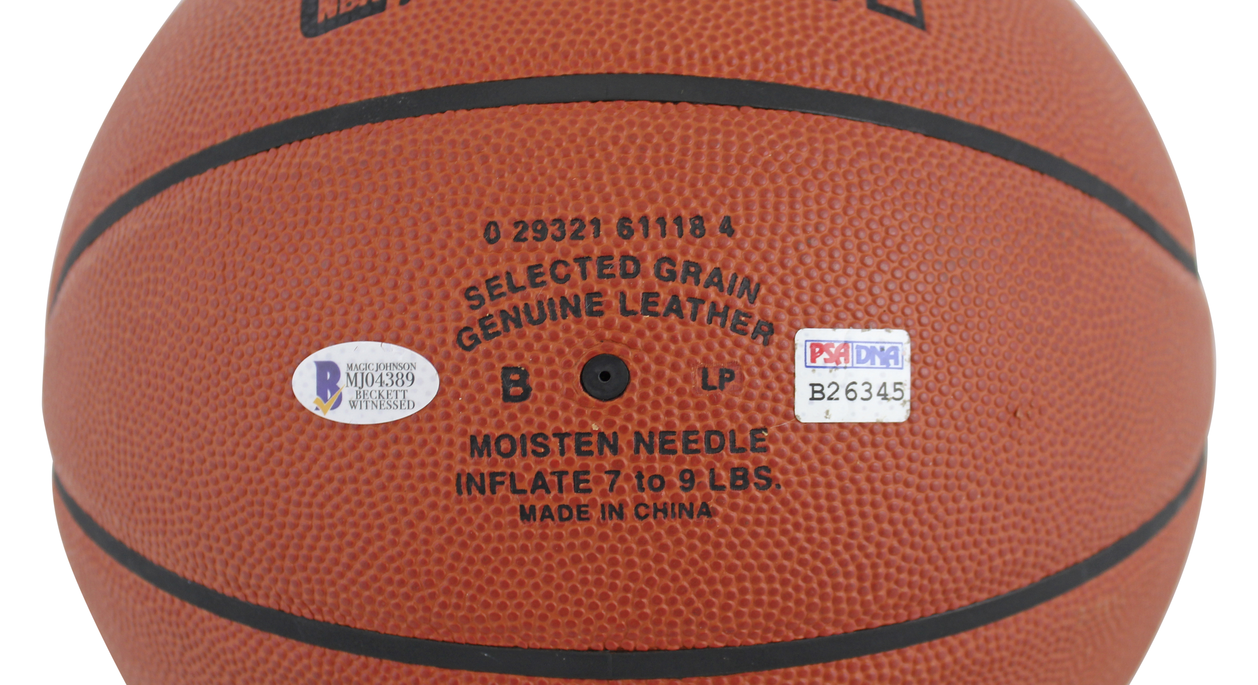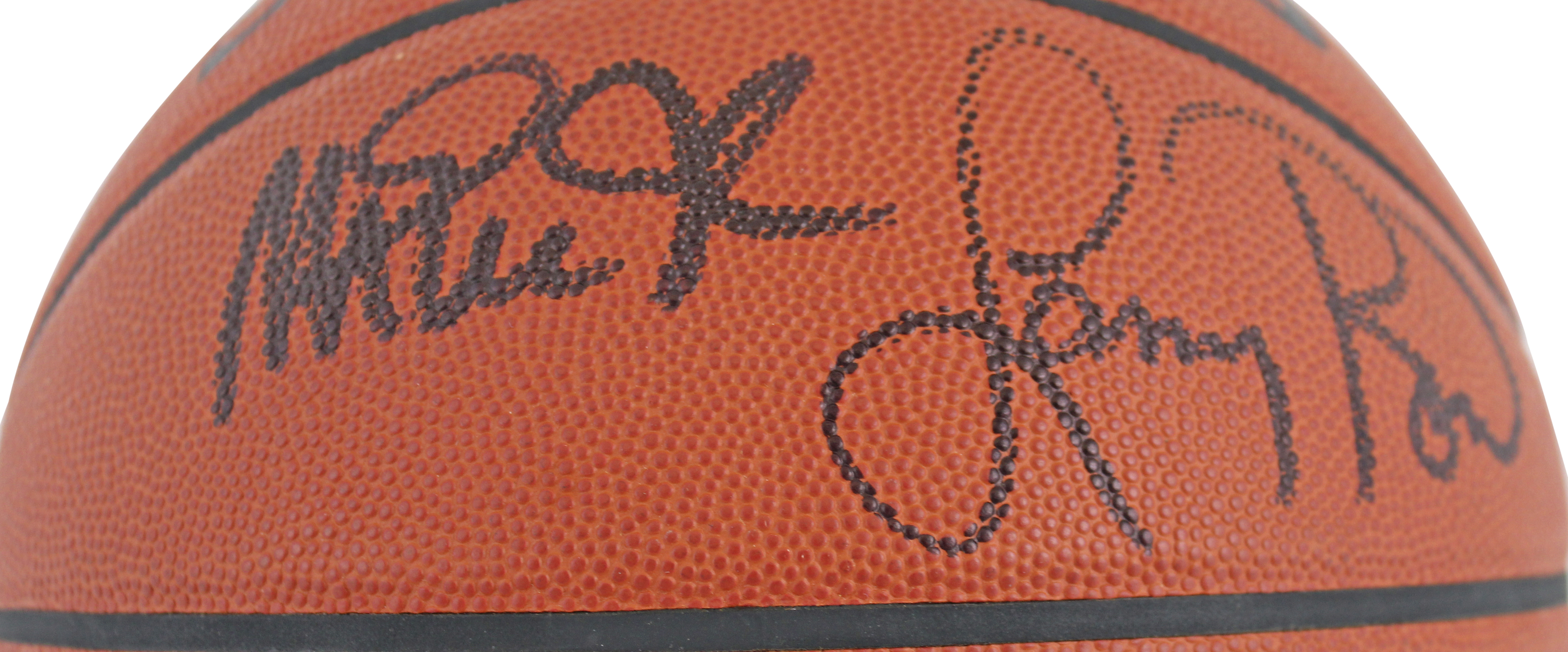 Spalding Official NBA Game Ball basketball. Hand-signed by Michael Jordan (Chicago Bulls, HOF), Magic Johnson (Los Angeles Lakers, HOF) and Larry Bird (Boston Celtics, HOF).