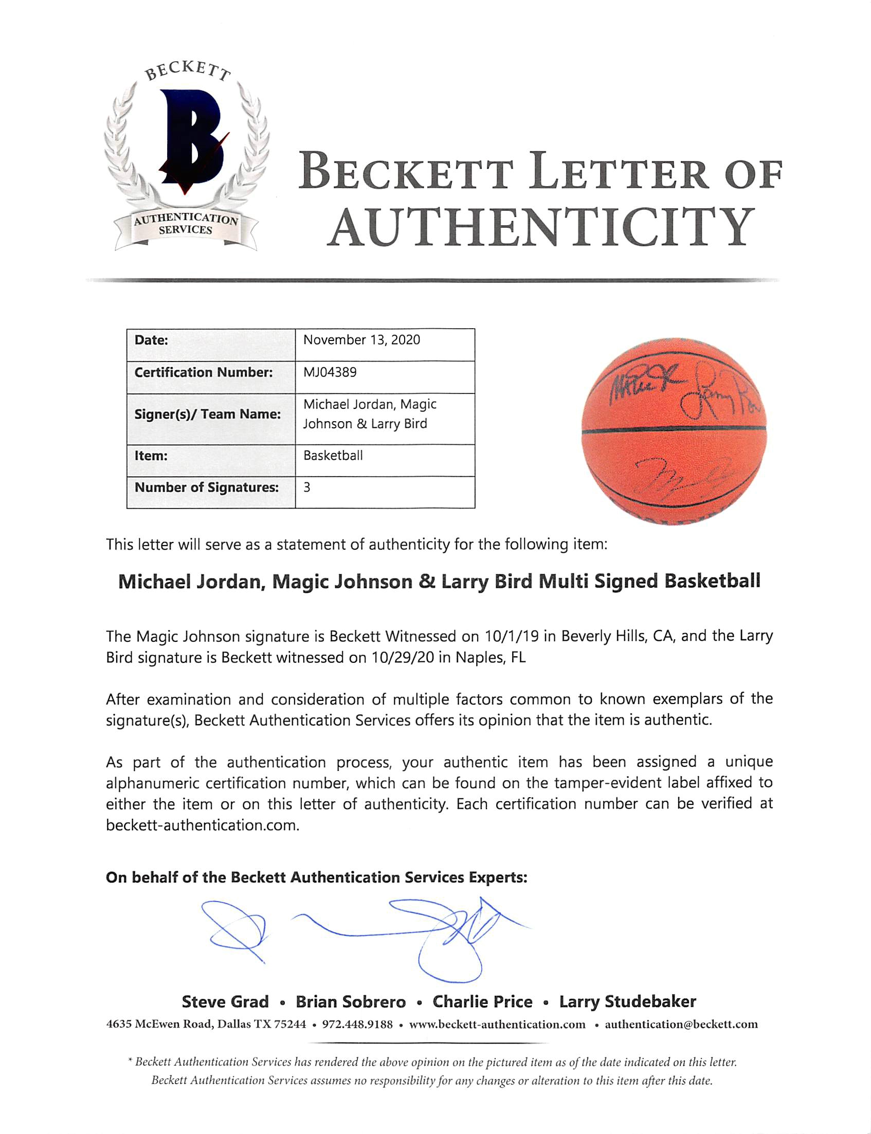 Michael Jordan, Magic Johnson & Larry Bird Signed NBA Game Ball Basketball (Beckett LOA & PSA COA)