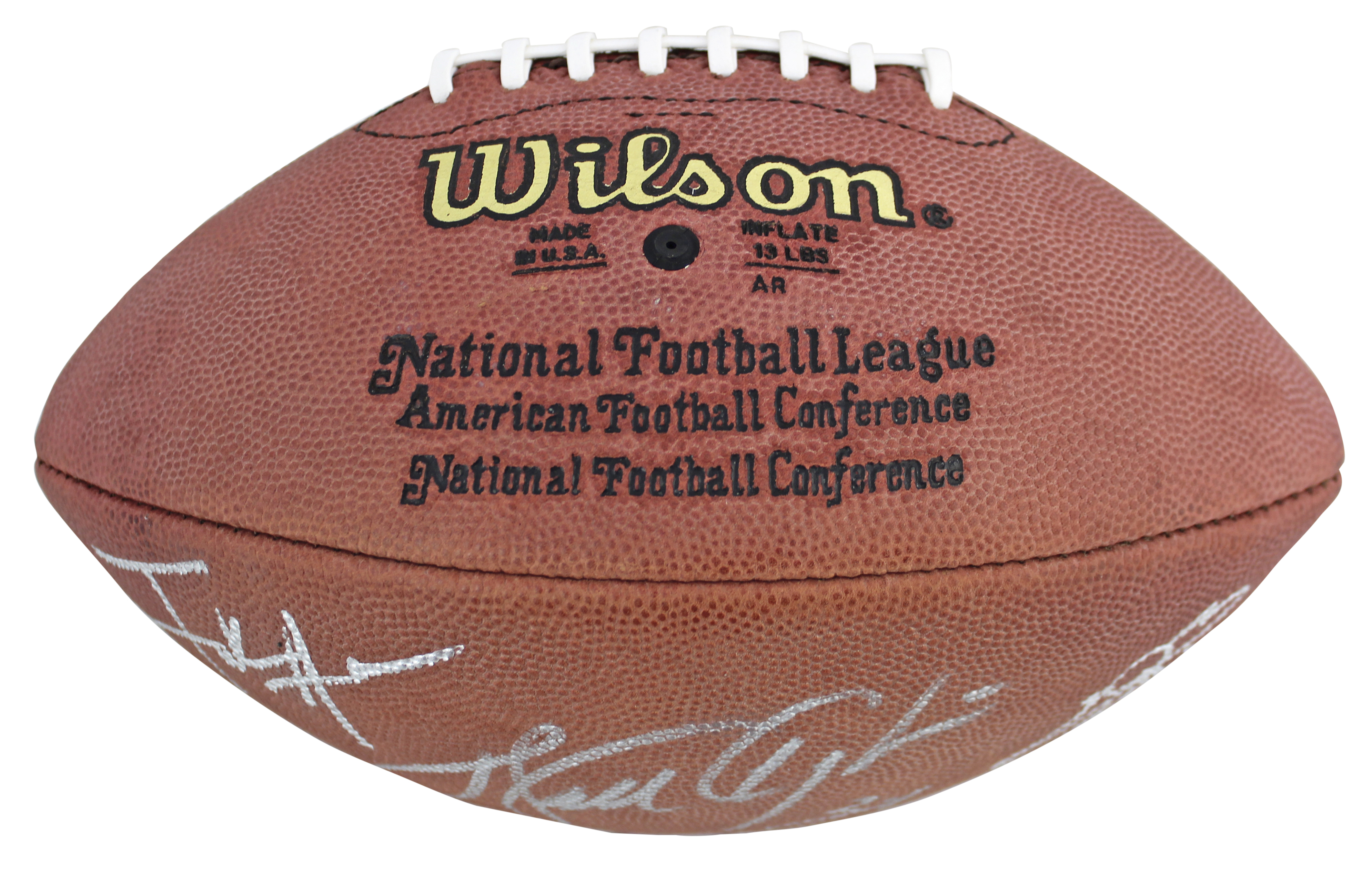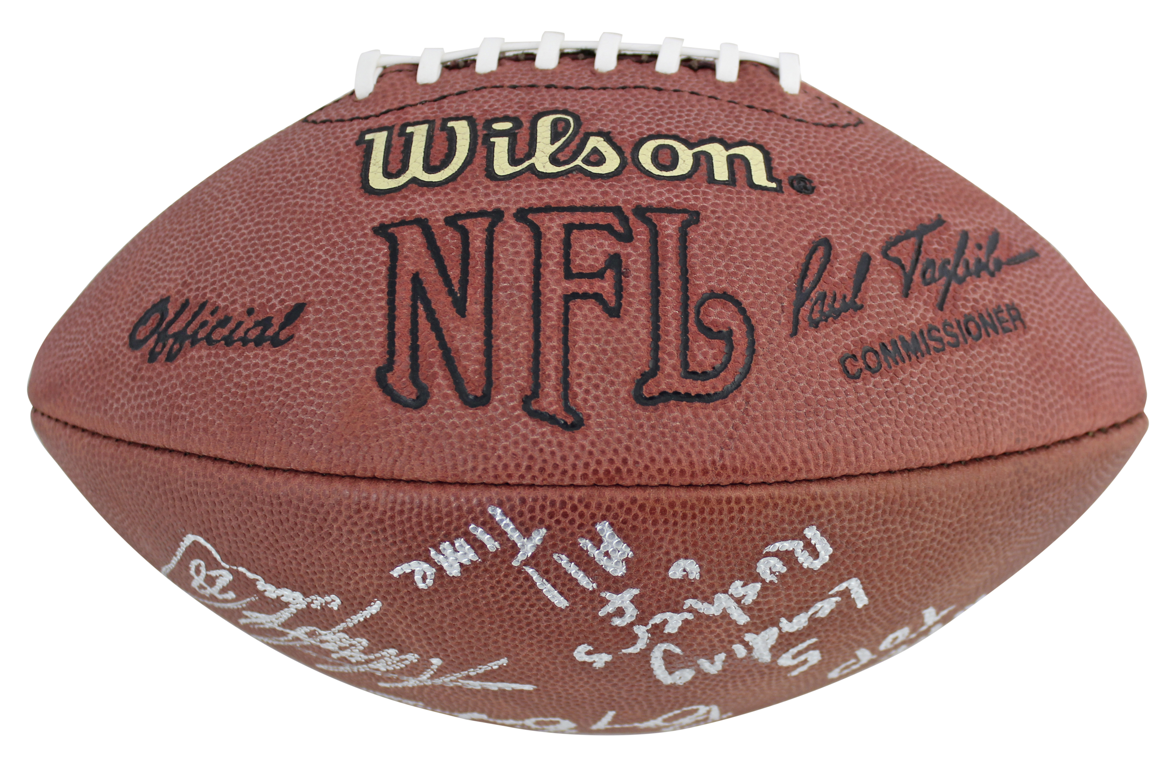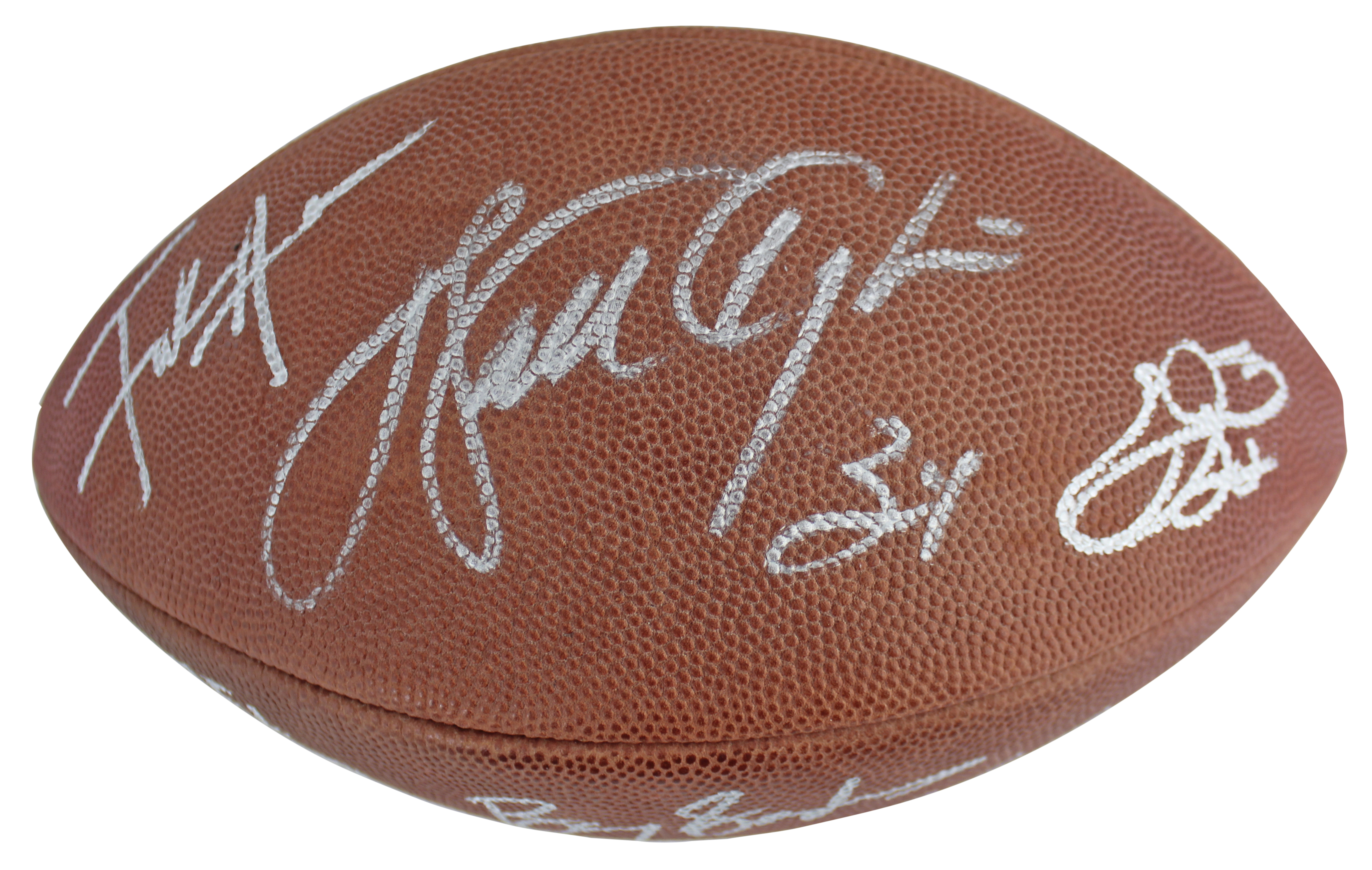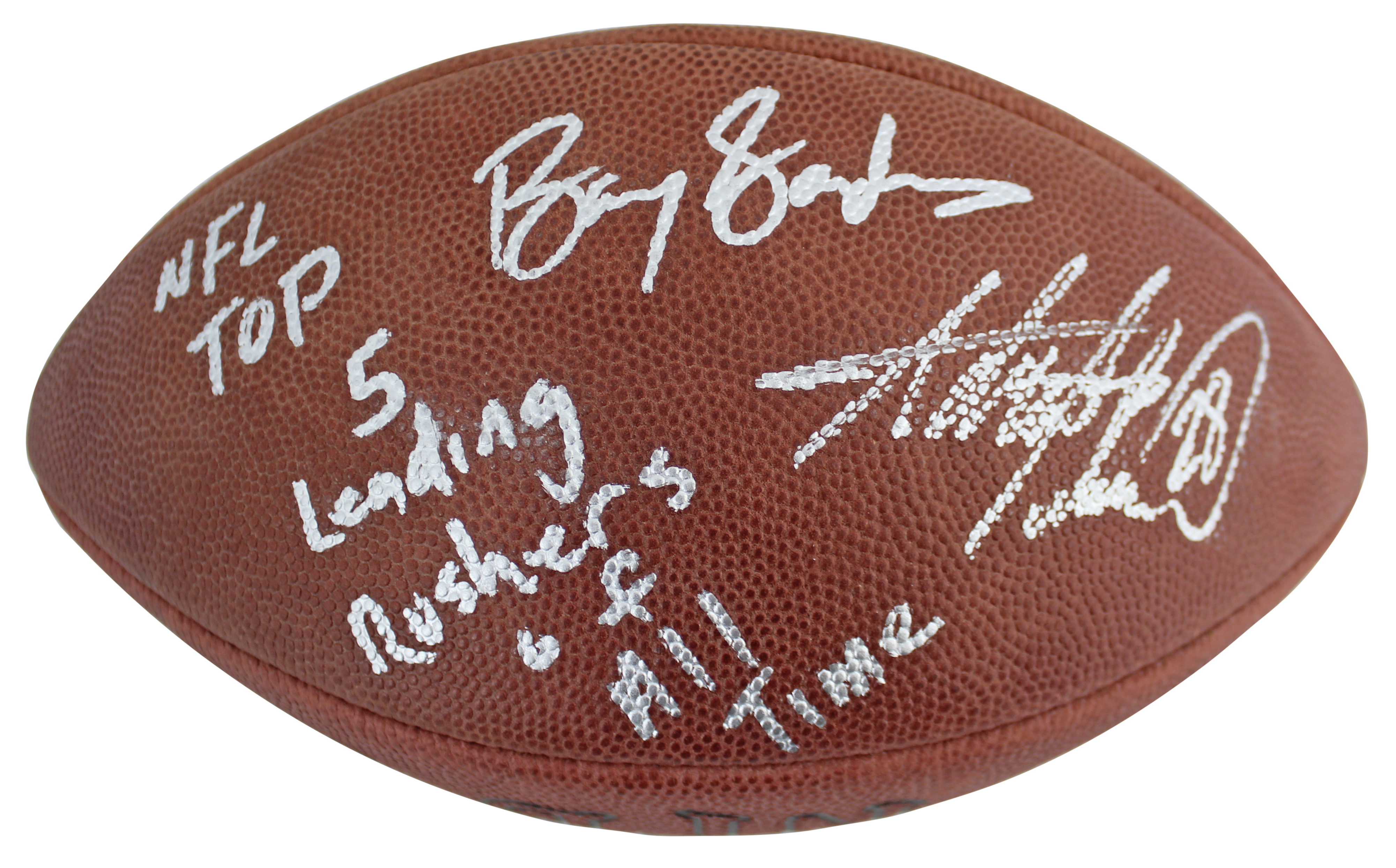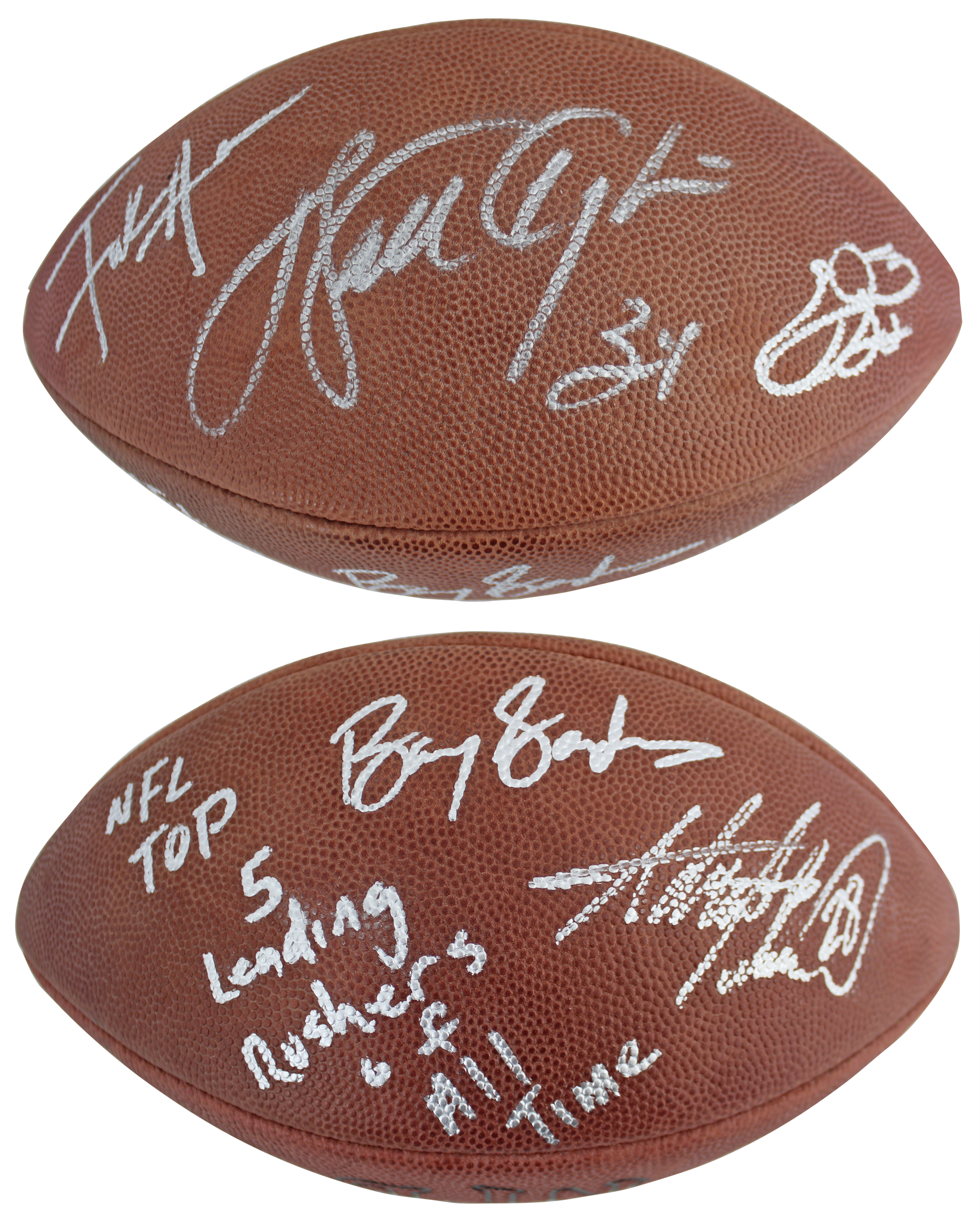 Wilson Official NFL football has been hand-signed and inscribed by Walter Payton, Emmitt Smith, Barry Sanders, Frank Gore and Adrian Peterson.