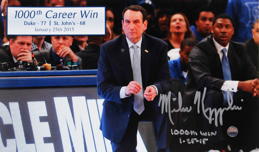 Mike Krzyzewski Signed Duke Blue Devils 6x10 Photo Inscribed "1,000th Win" & "1-25-15" (Steiner Hologram)