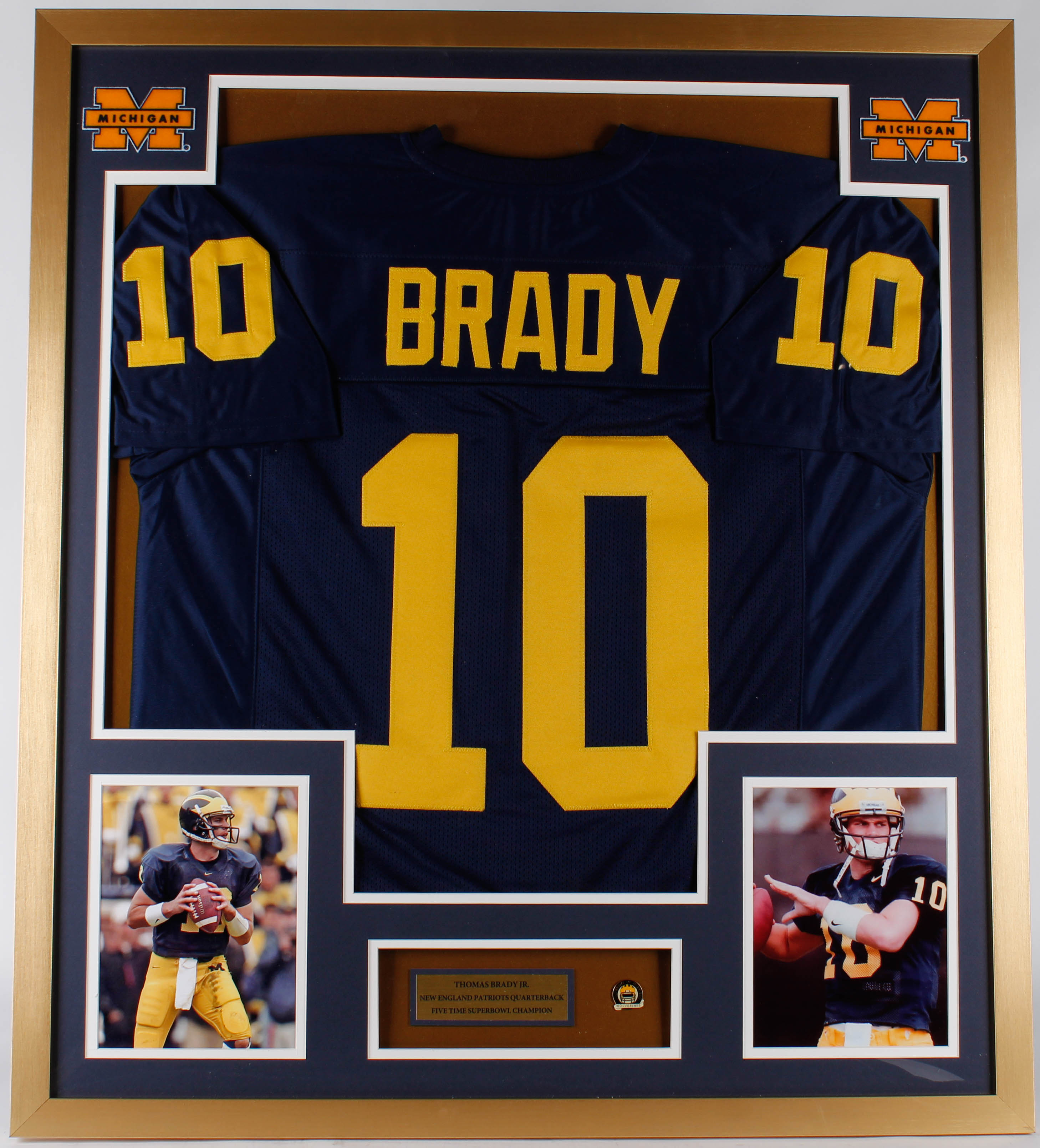 Tom Brady 32x36 Custom Framed Jersey Display with Michigan Wolverines Pin