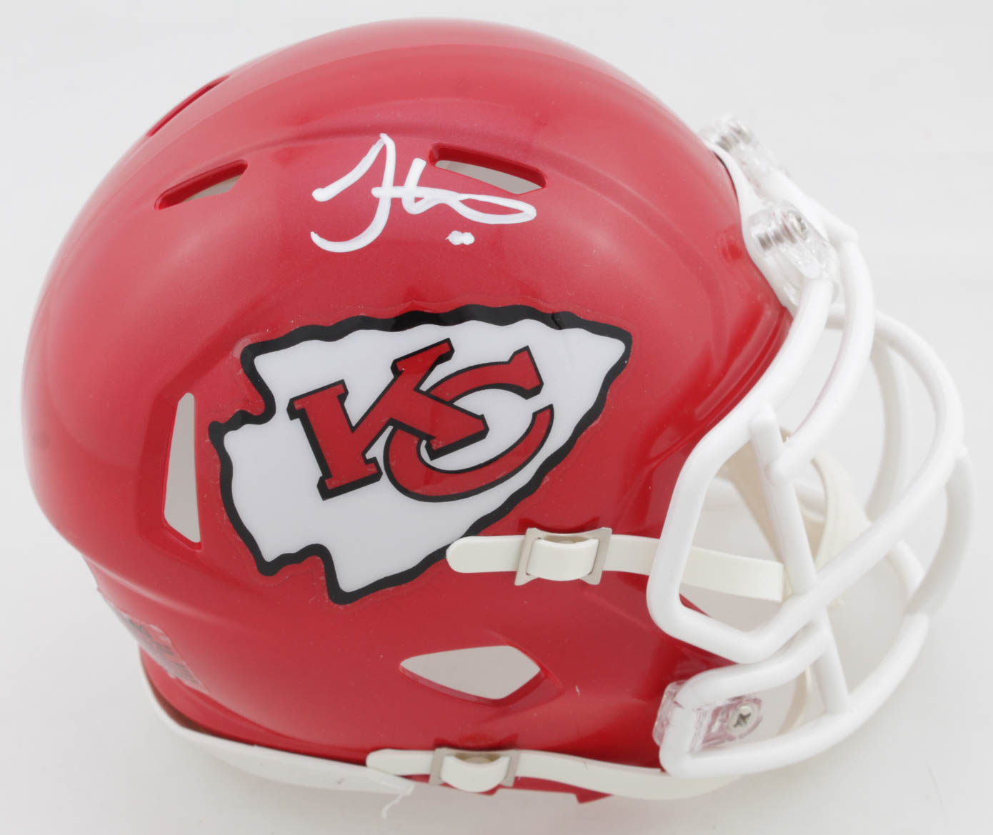 Riddell Kansas City Chiefs speed mini helmet. Has been hand-signed by Tyreek Hill.