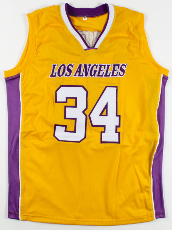 Custom on-court style jersey. Everything is sewn on, size XL. Has been hand-signed by Shaquille O'Neal (HOF).