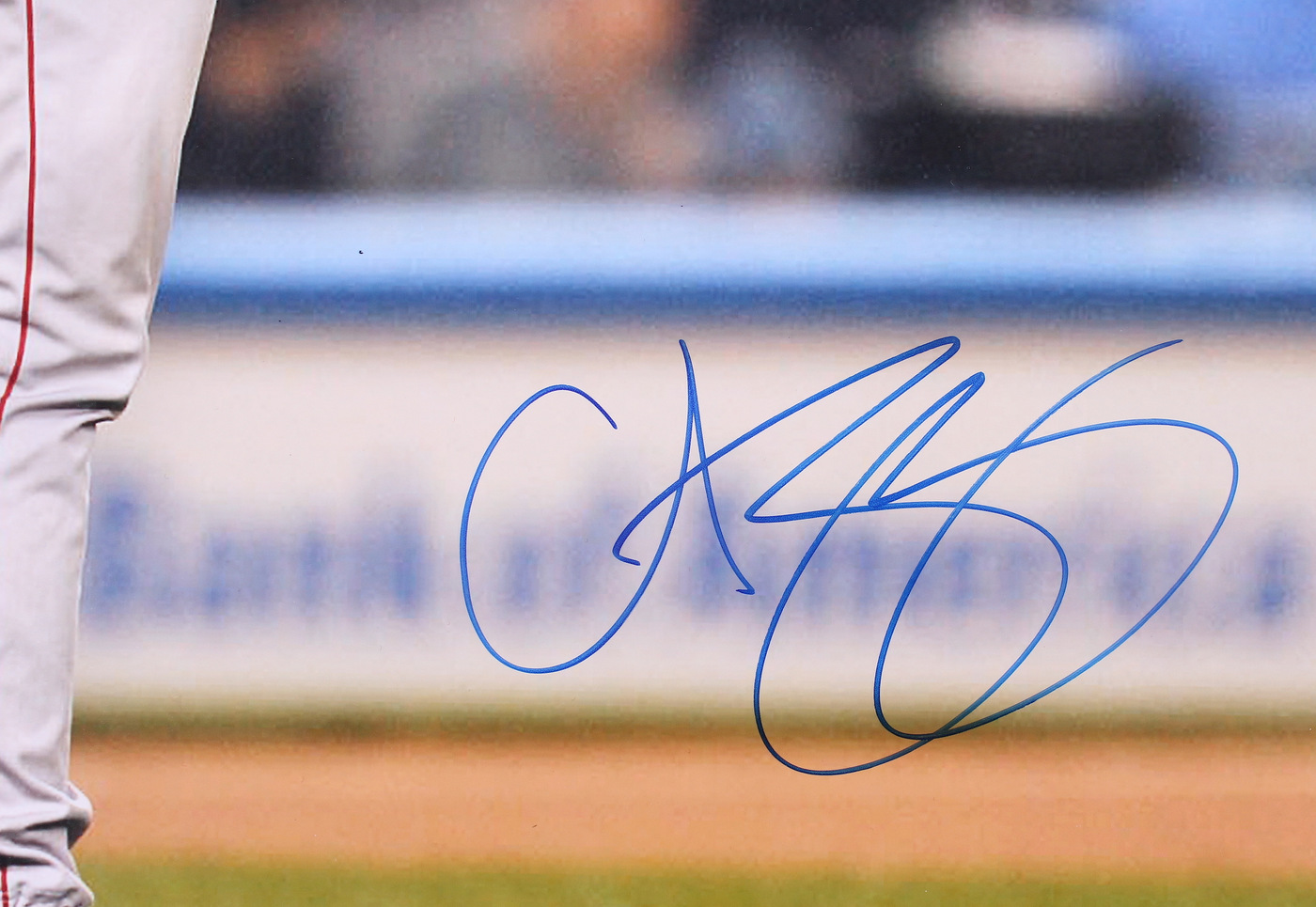 Photo measures 16" x 20" in size and has been hand-signed in blue felt-tip pen by Curt Schilling (Diamondbacks). The autograph includes an official James Spence Authentication (JSA) hologram and matching COA for authenticity purposes. The signing of this item was witnessed by JSA.