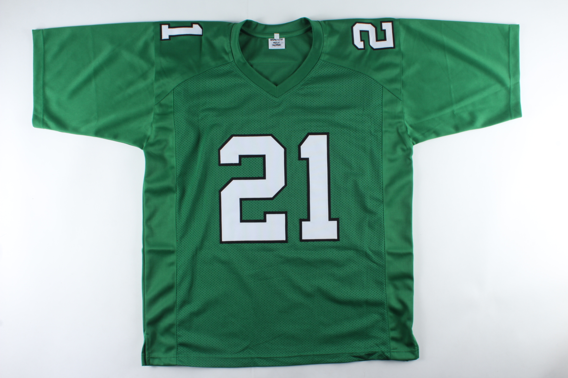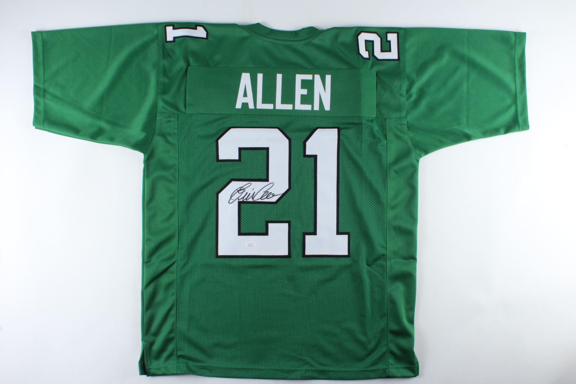 Custom on-field style jersey. Everything is sewn on, size XL. Hand-signed by Eric Allen.