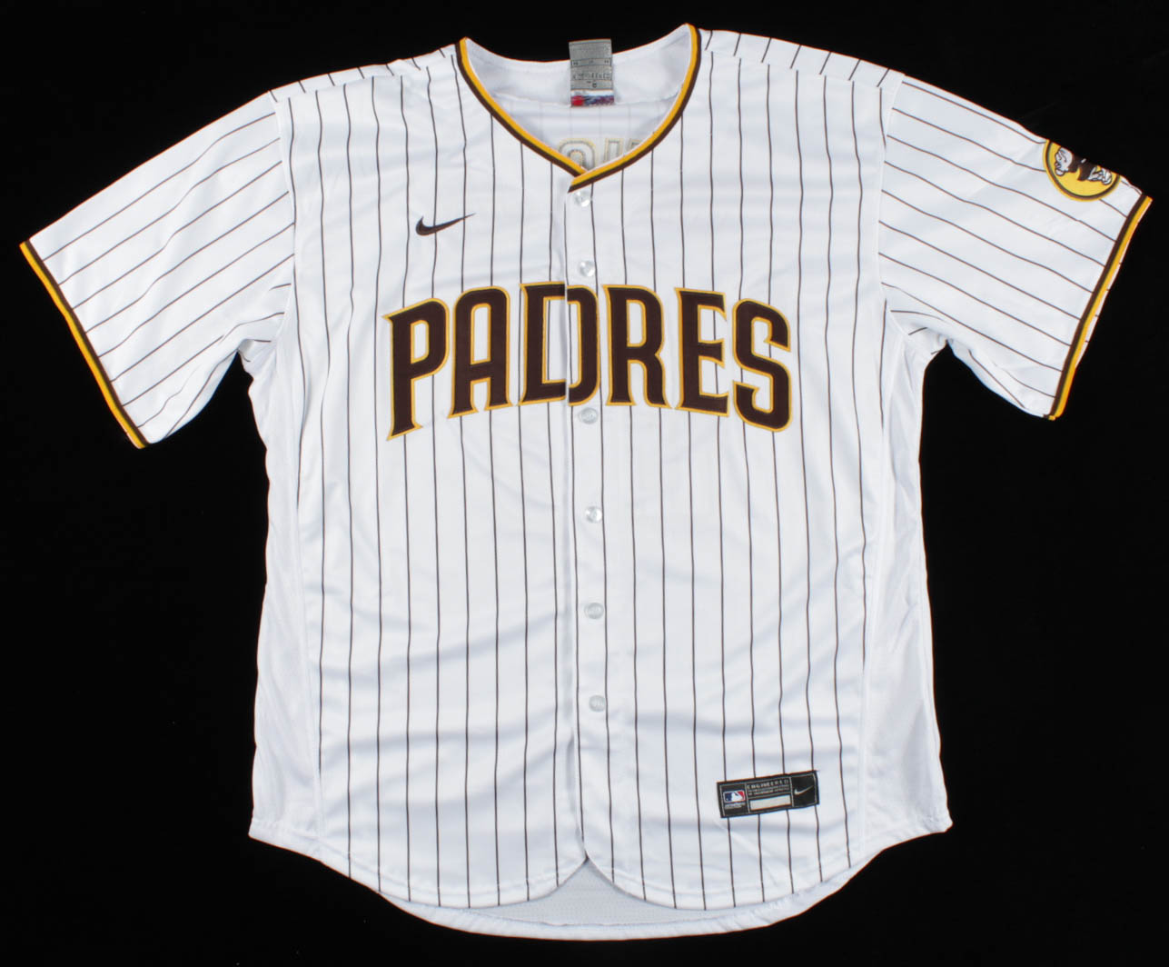 Nike on-field style jersey. Everything is sewn on, size 48. Has been hand-signed by Fernando Tatis Jr. (San Diego Padres)