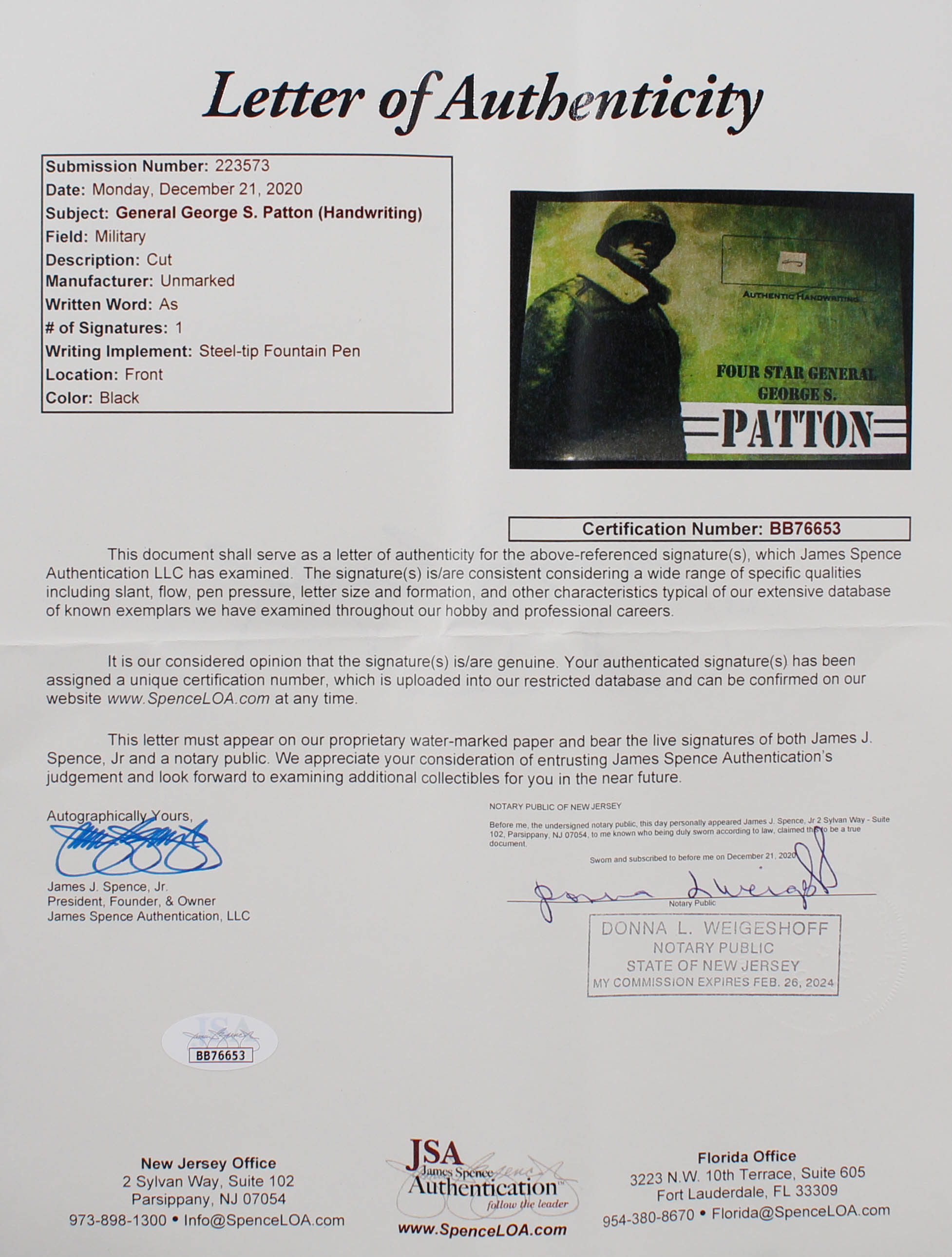 Cut includes one word hand-written by George S. Patton (D. 1945). Comes encased in acrylic display as shown.