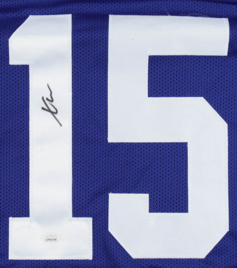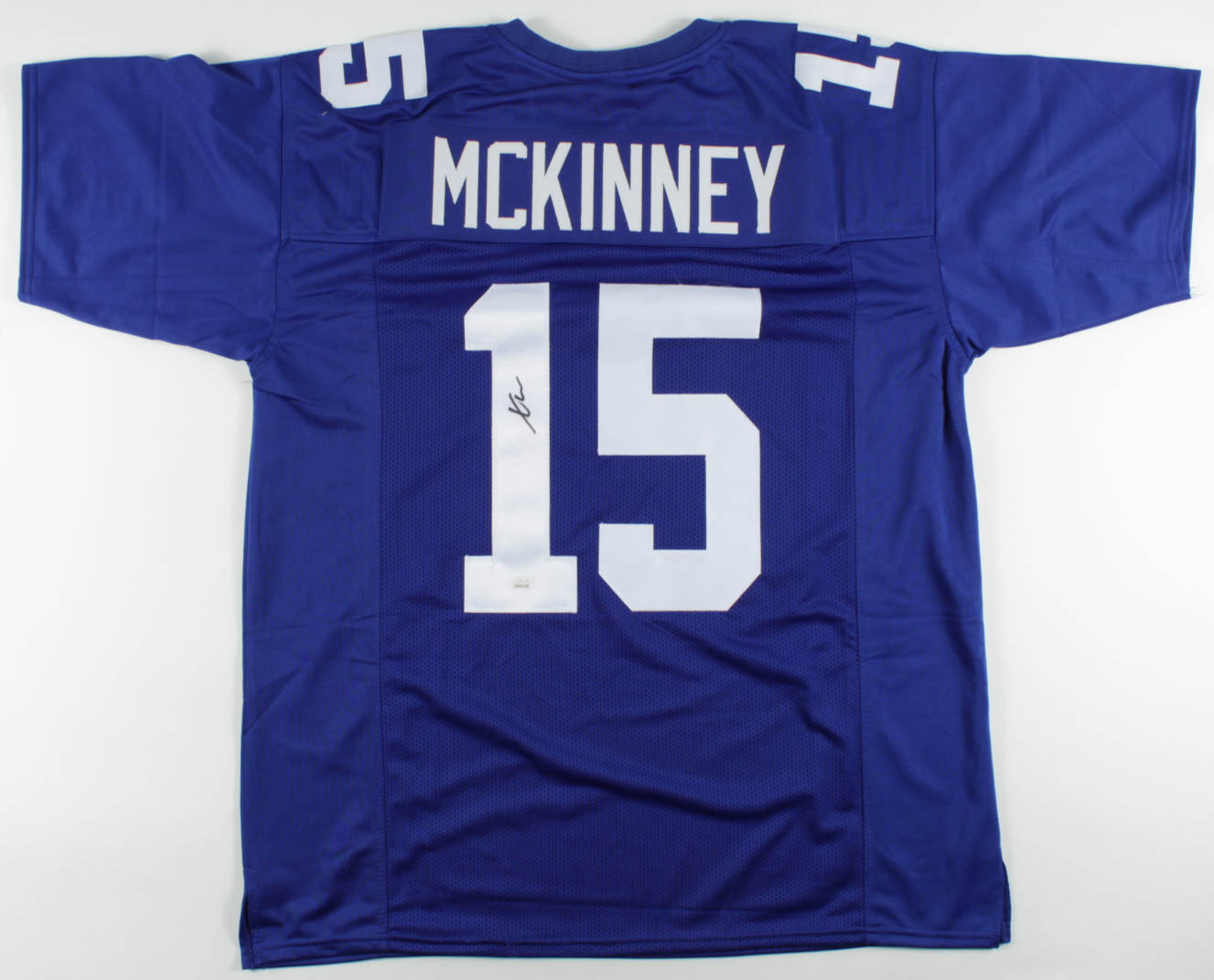 Custom on-field style jersey. Everything is sewn on, size XL. Has been hand-signed by Xavier McKinney.