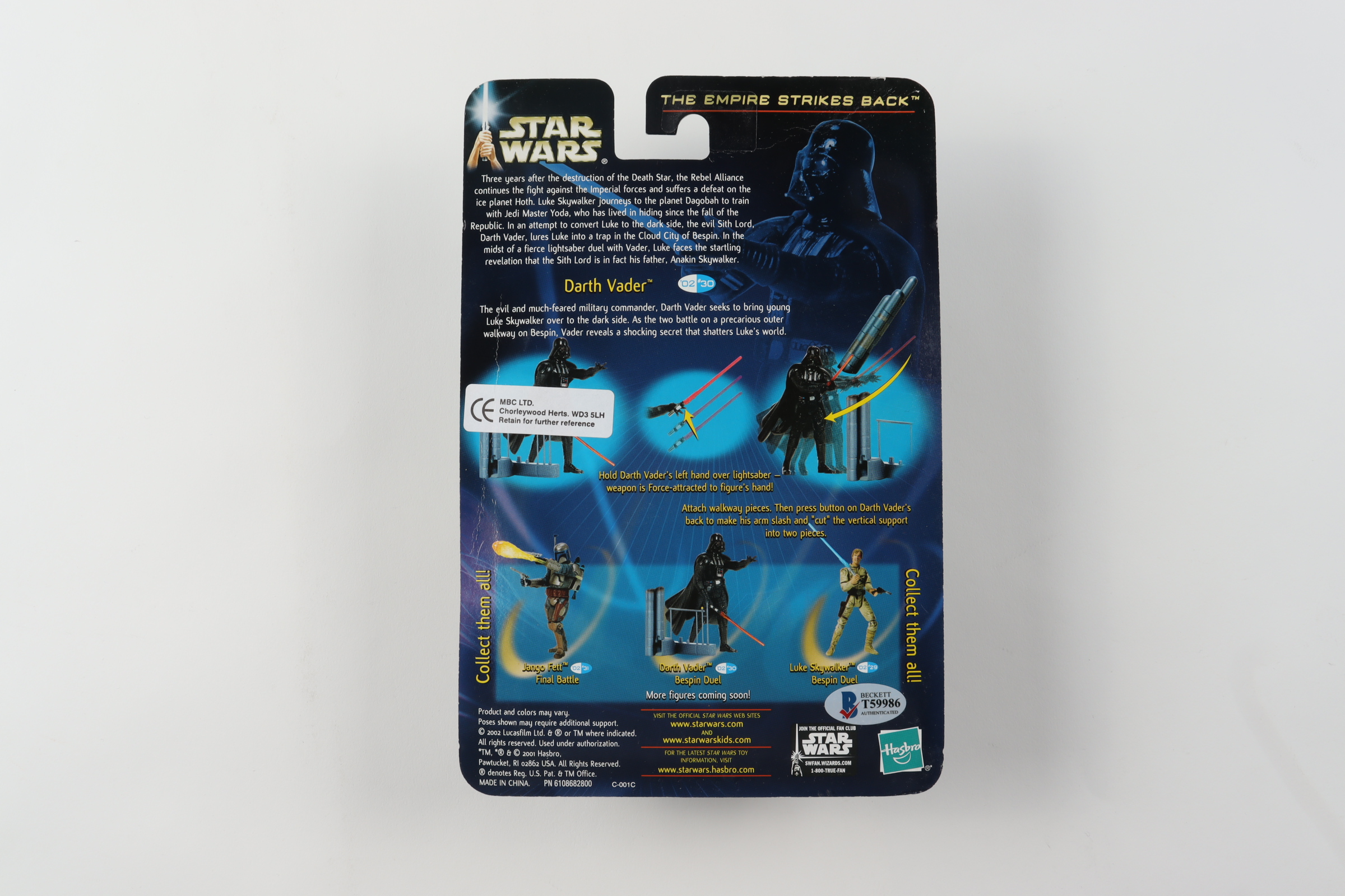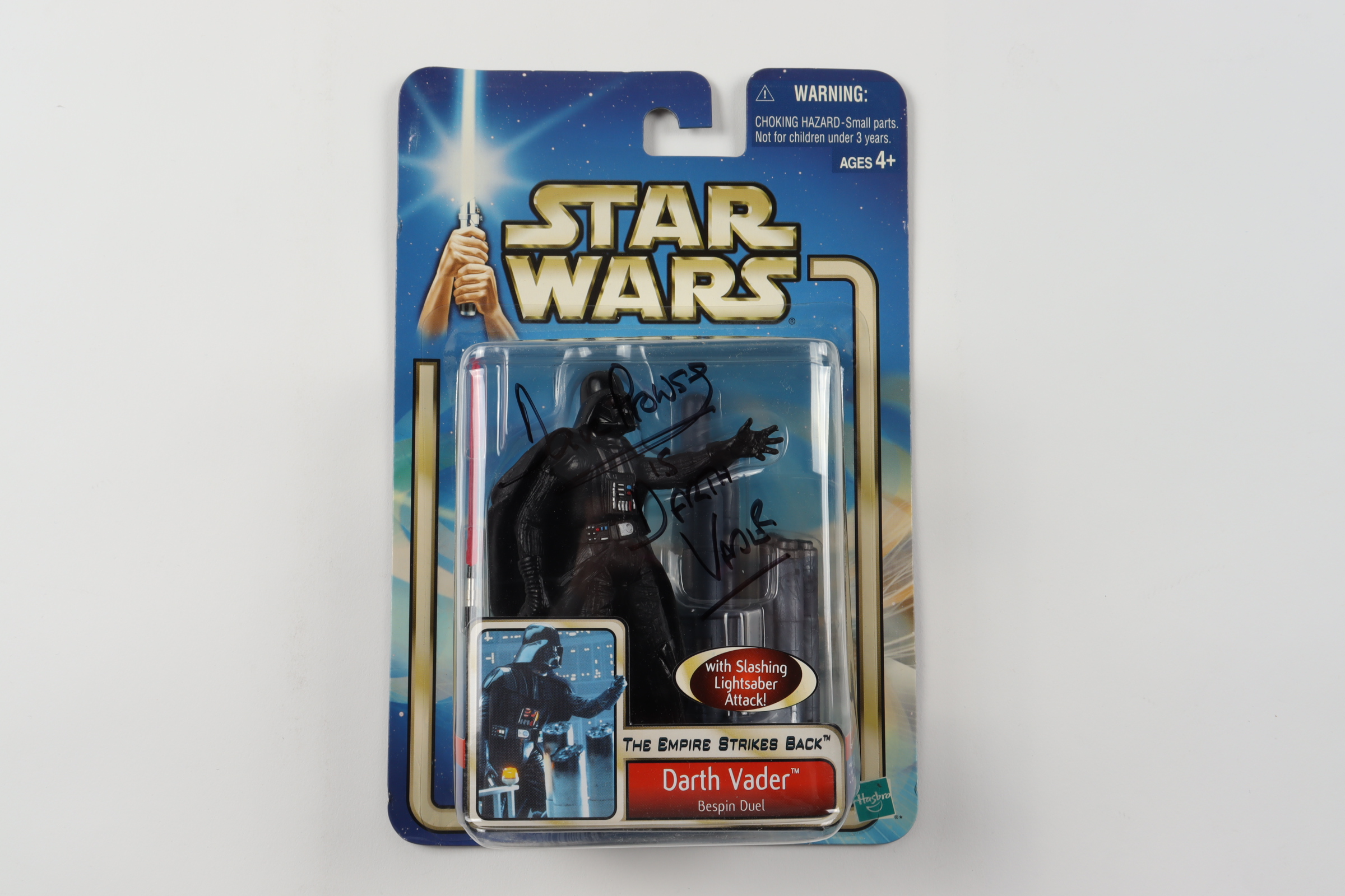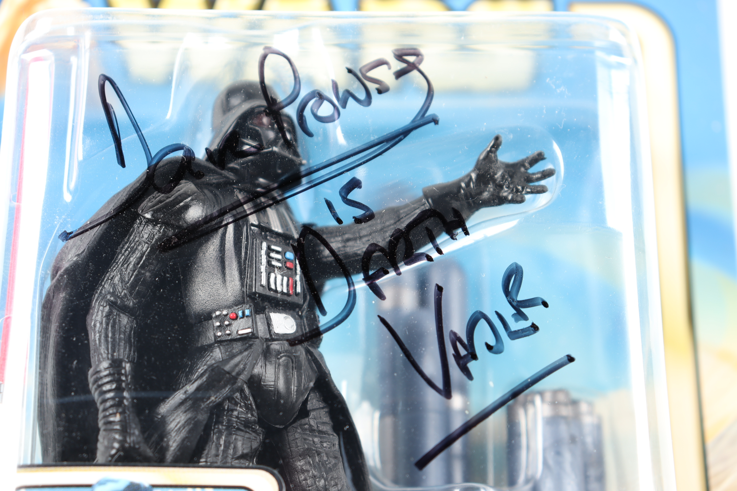 2002 Hasbro "Star Wars" Darth Vader action figure measures approximately 4" tall and the packaging has been hand-signed by Dave Prowse (D. 2020). Please see images for details regarding the condition of the action figure and packaging.