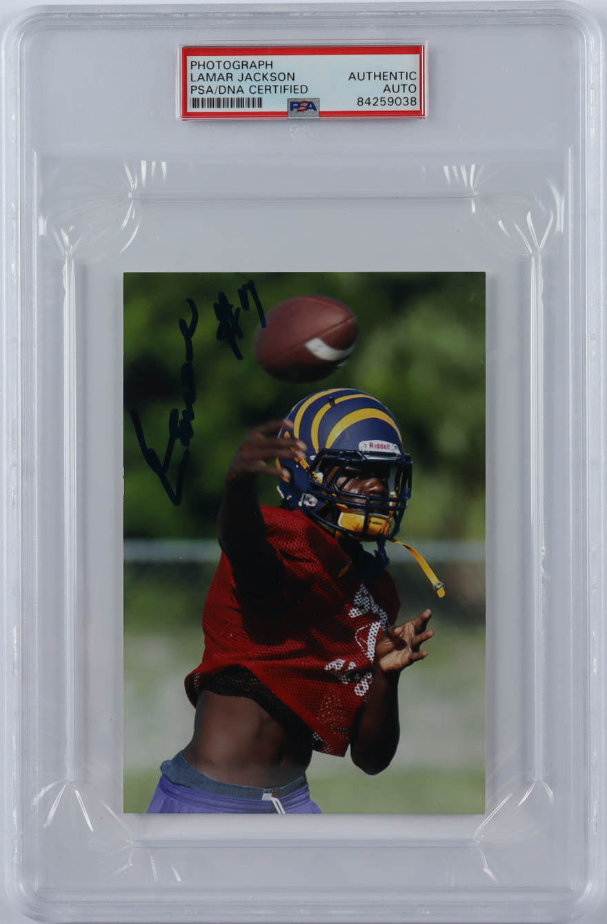 Lamar Jackson Signed Boynton Beach High School 5x7 Photo (PSA Encapsulated)