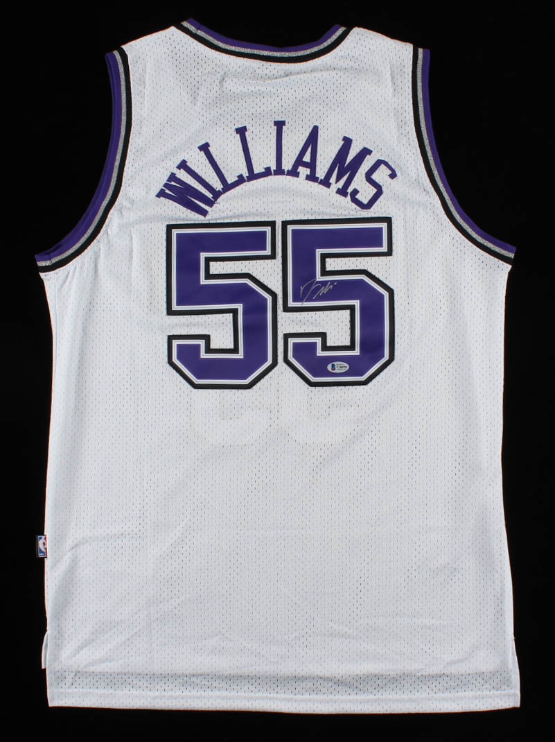 Nike on-court style jersey. Everything sewn on, size L. Hand-signed by Jason Williams (Sacramento Kings).