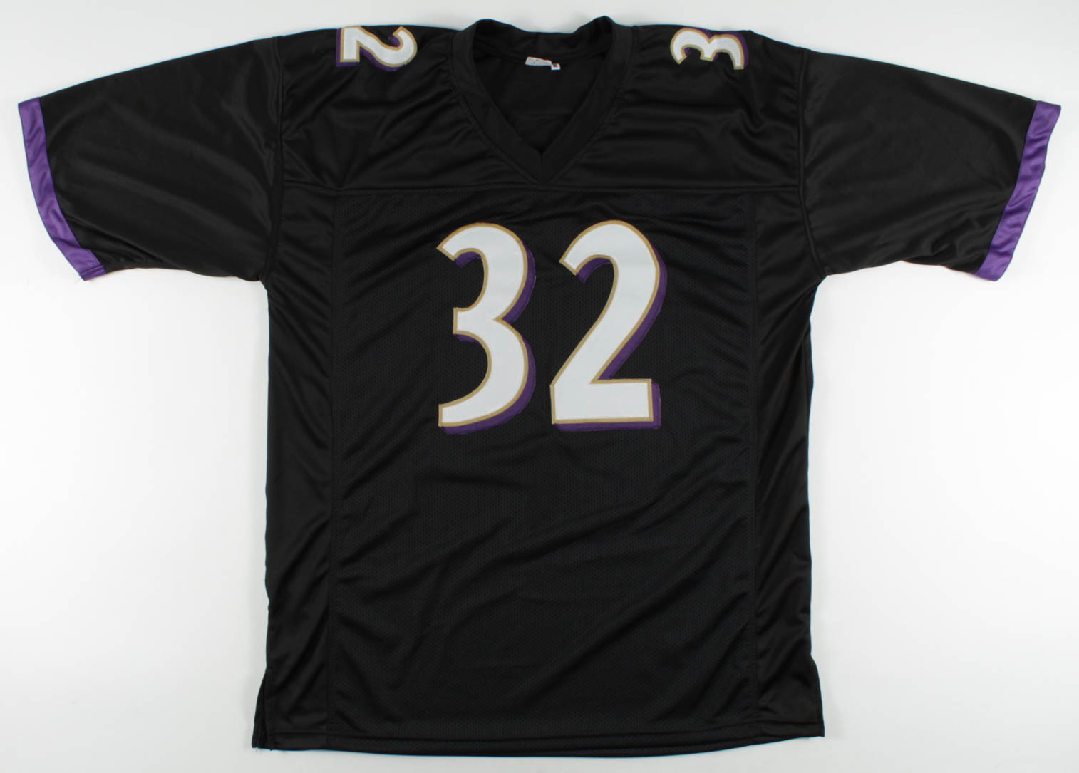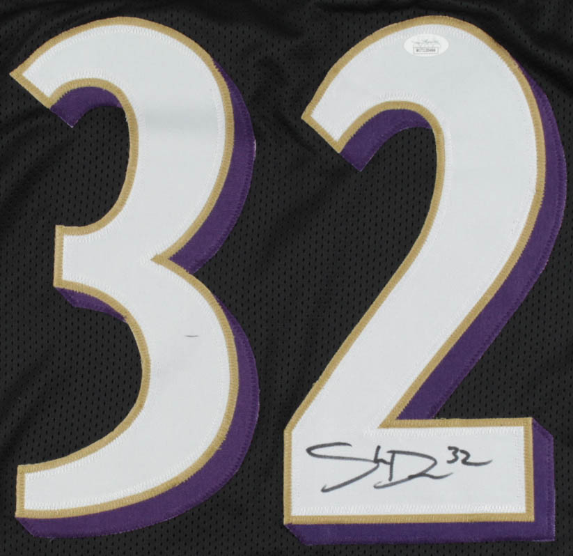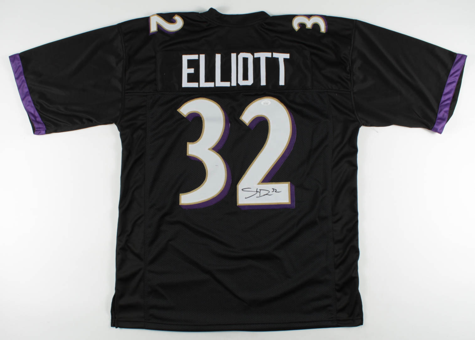 Custom on-field style jersey. Everything is sewn on, size XL. Has been hand-signed by DeShon Elliott.