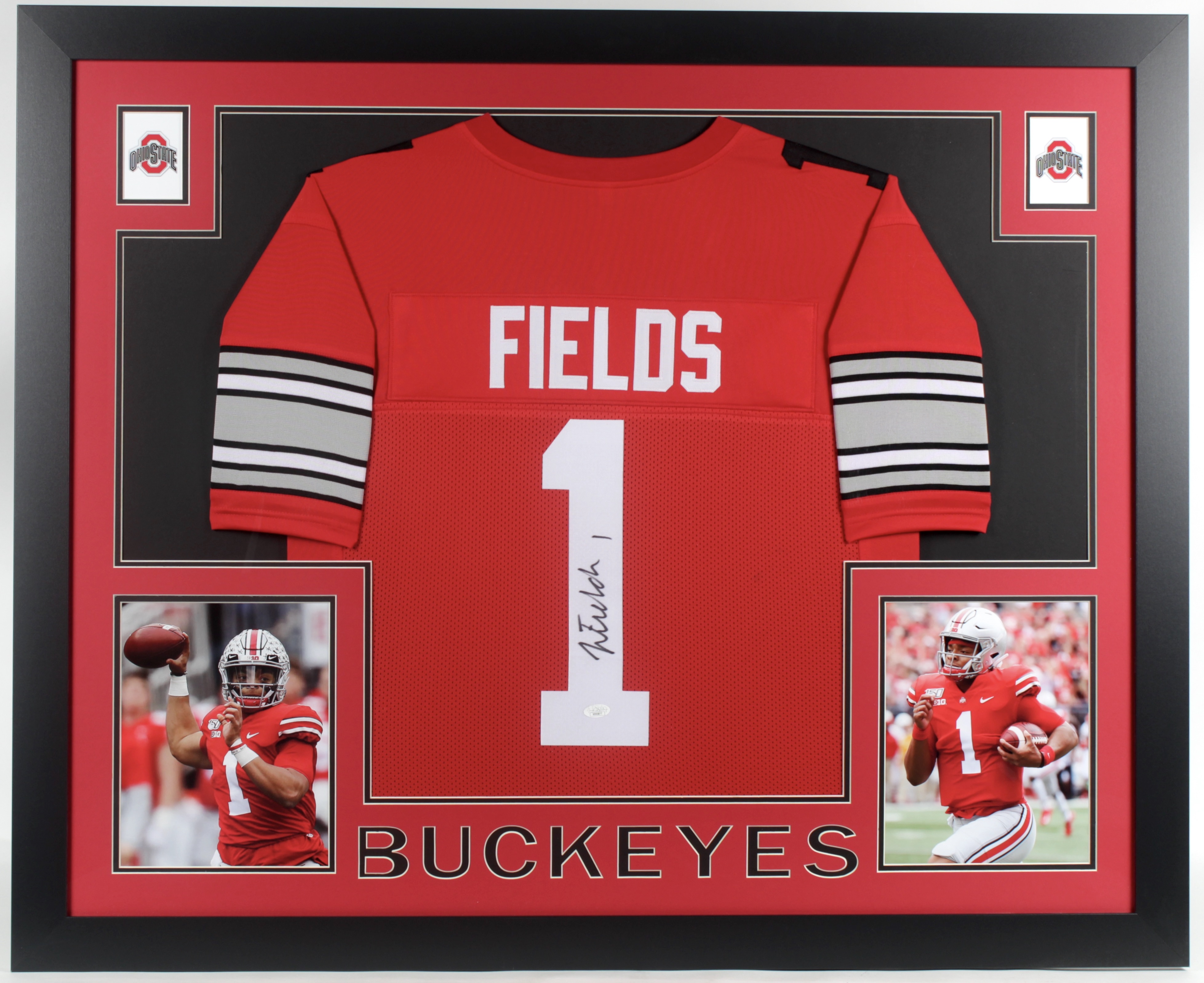 Justin Fields Signed 35x43 Custom Framed Jersey (JSA COA)