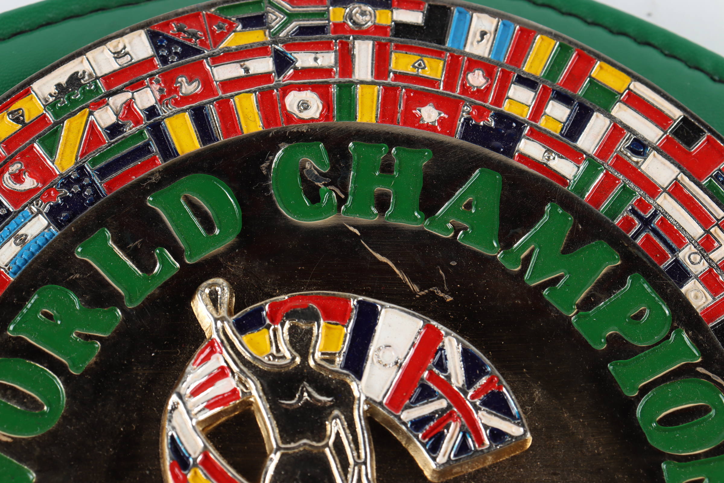 Full-size replica WBC Heavyweight Championship belt. Hand-signed by George Foreman (HOF). The belt includes thick metal plates and faux leather.