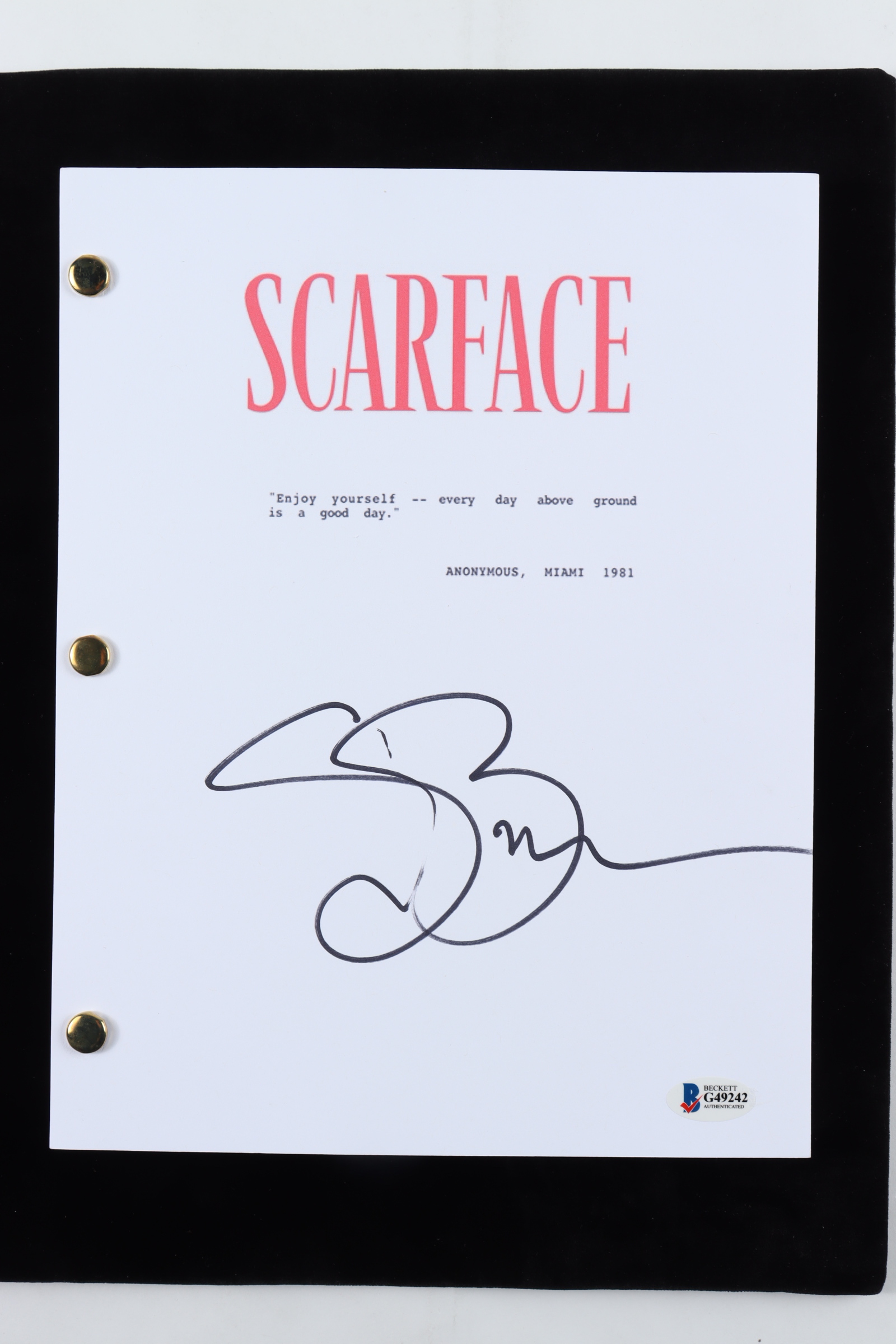Steven Bauer Signed “Scarface” Movie Script (Beckett Hologram)