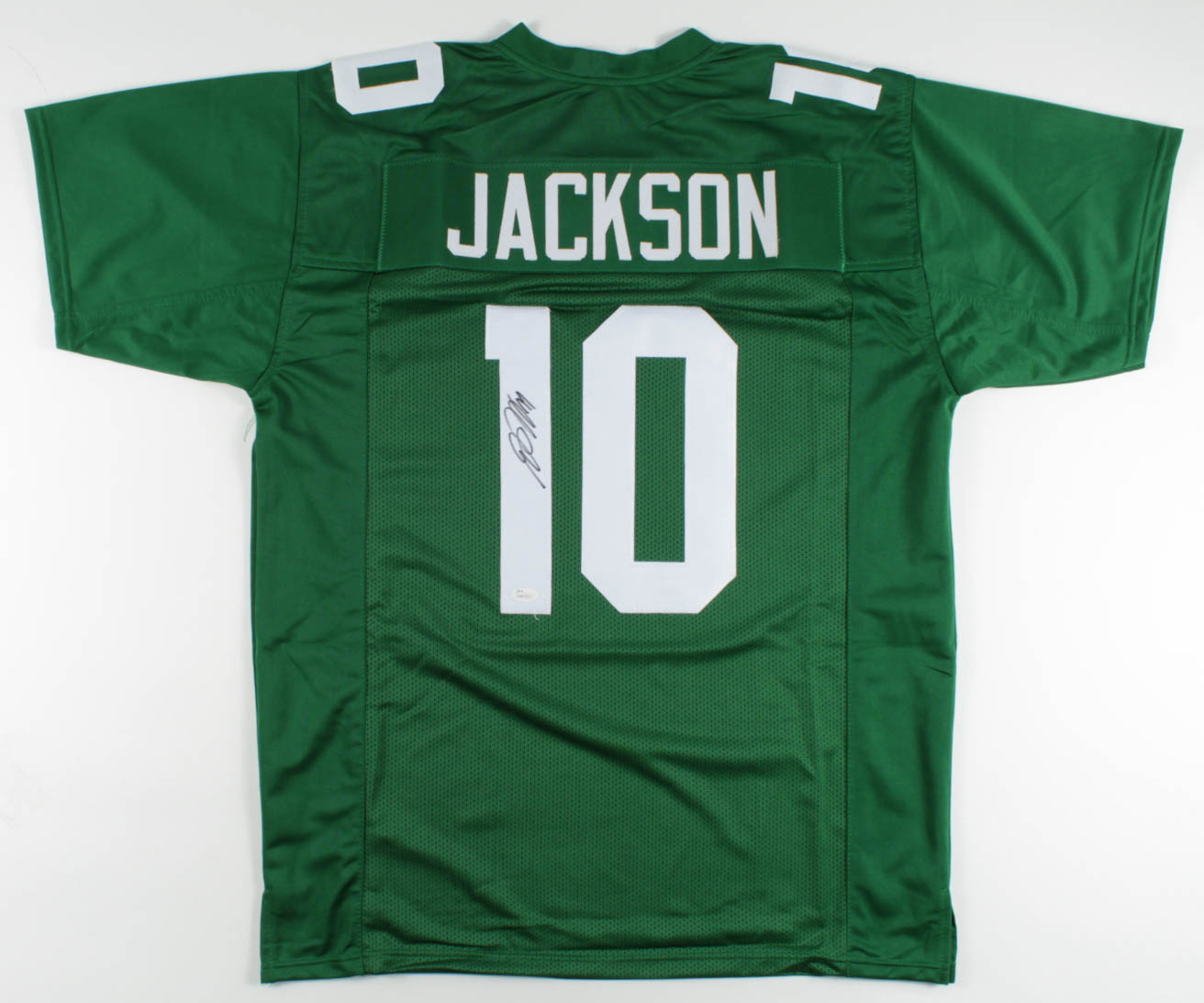 Custom on-field style jersey. Everything is sewn on, size XL. Has been hand-signed by DeSean Jackson.