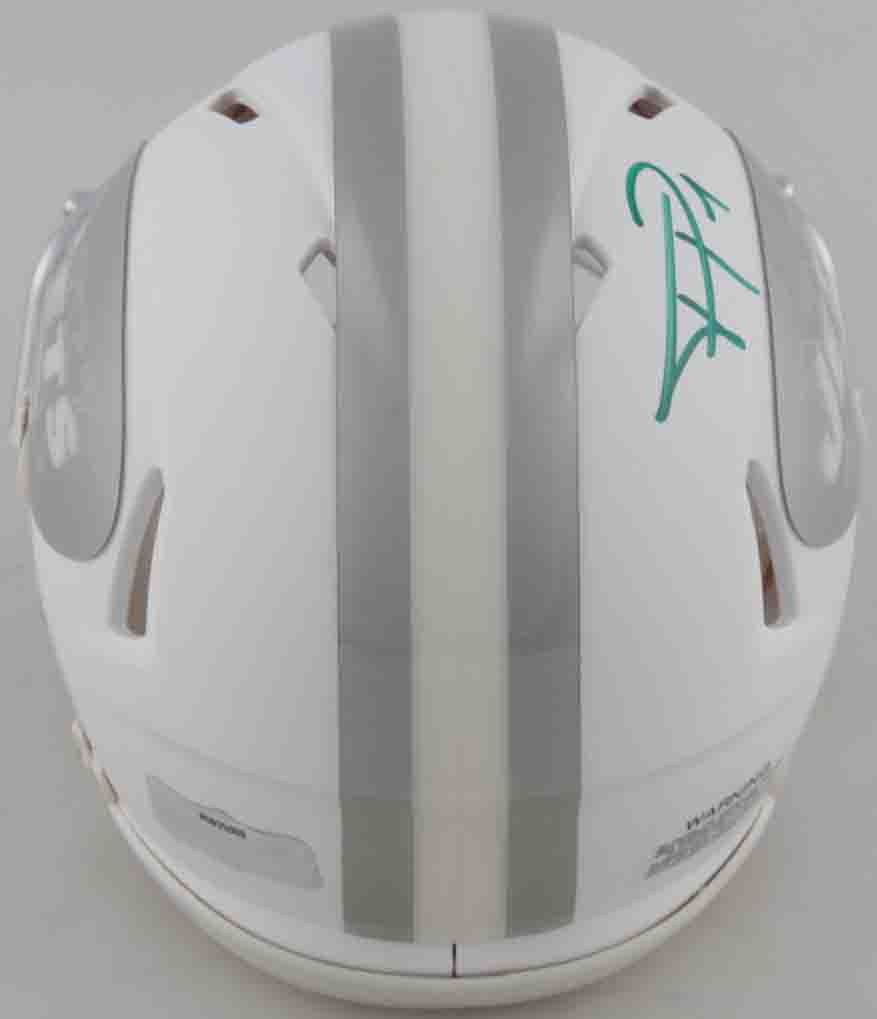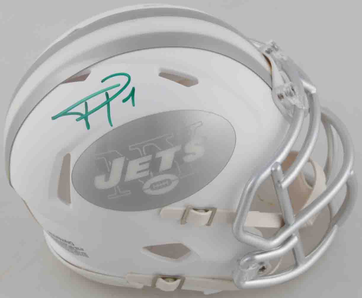 Riddell New York Jets White ICE Speed Mini Helmet. Has been hand-signed by Terrelle Pryor.