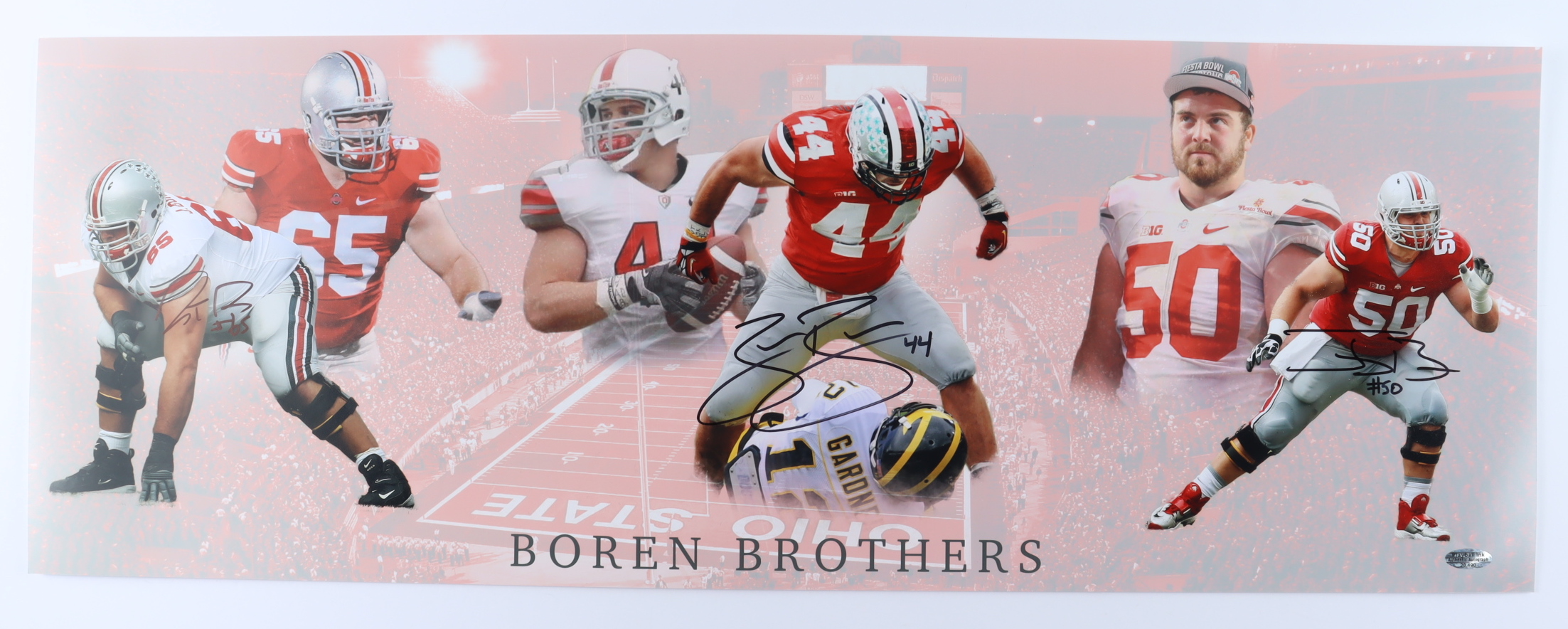 Justin Boren, Zach Boren, & Jacoby Boren Signed Ohio State Buckeyes 10x28 Photo (Playball Ink Hologram)