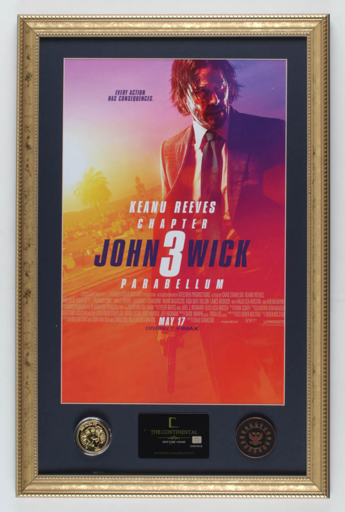 "John Wick: Chapter 3 – Parabellum" 15x20 Custom Framed Movie Poster Display with Movie Prop Replica Gold Coin, Marker & Continental Hotel Keycard