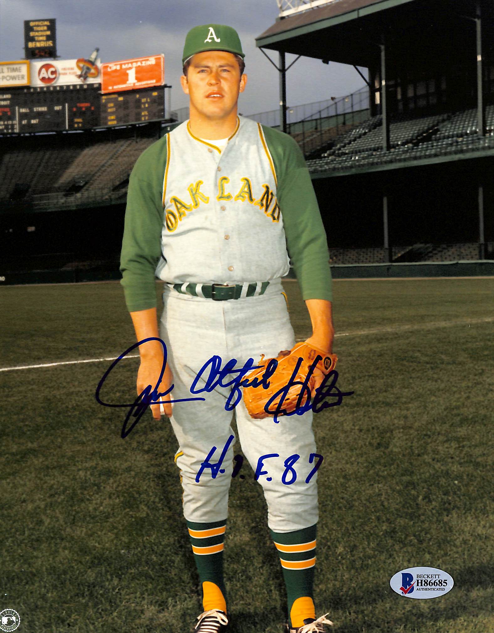 Jim "Catfish" Hunter Signed Athletics 8x10 Photo Inscribed "H.O.F. 87" (Beckett COA)
