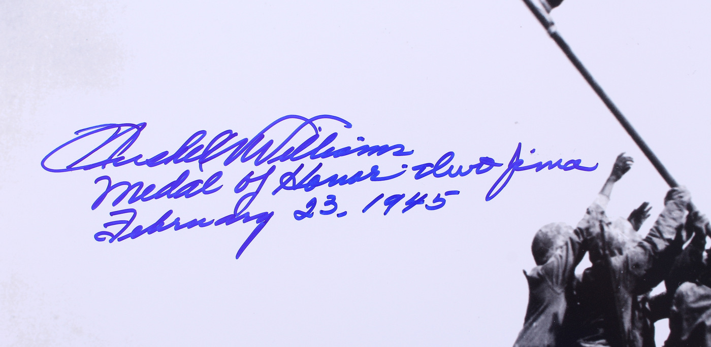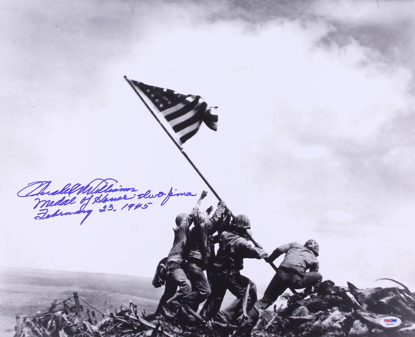 Hershel Williams Signed "Raising the Flag on Iwo Jima" 16x20 Photo Inscribed "Medal of Honor Iwo Jima February 23, 1945" (PSA COA)