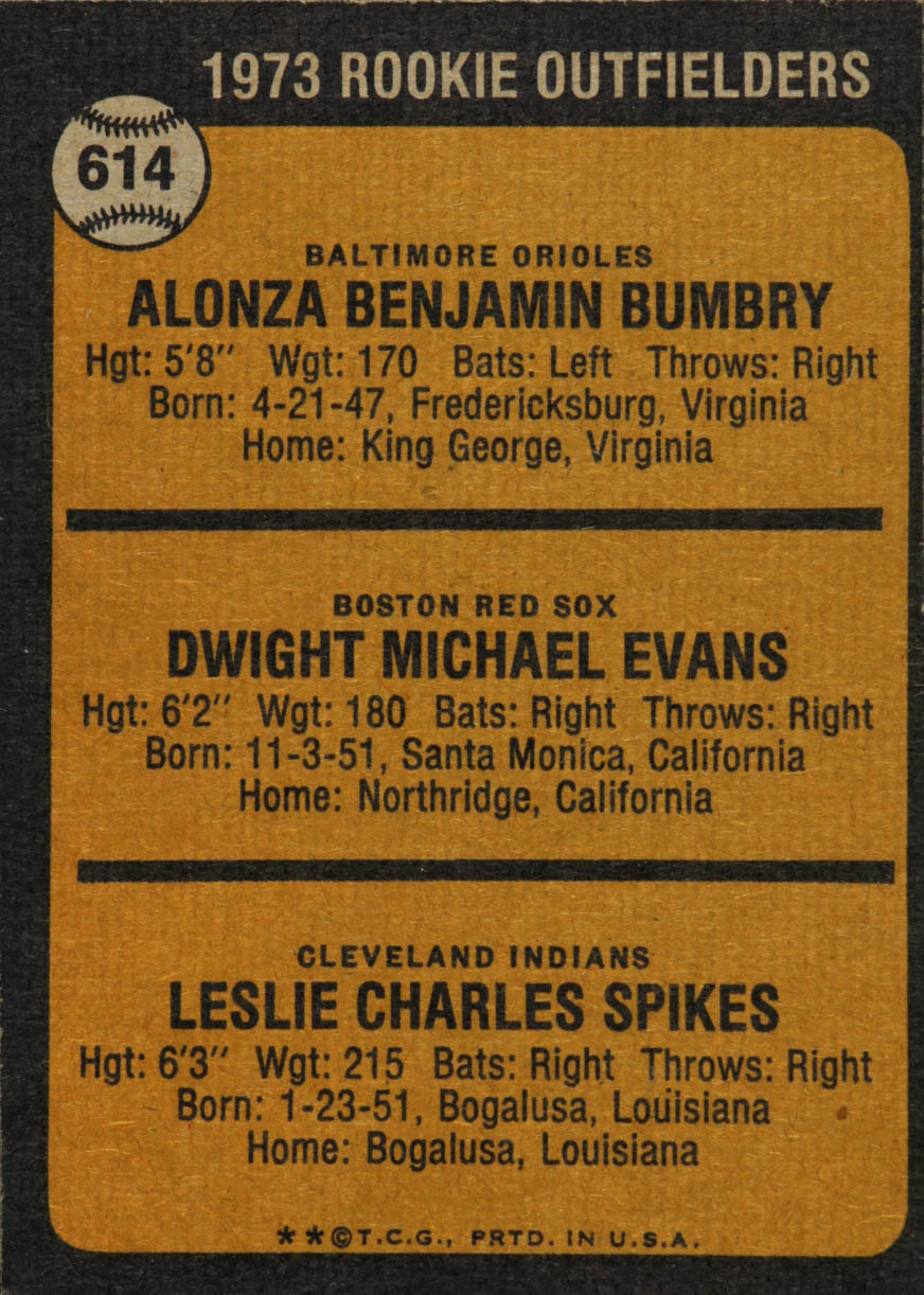 Al Bumbry / Dwight Evans / Charlie Spikes 1973 Topps #614 Rookie Outfielders RC