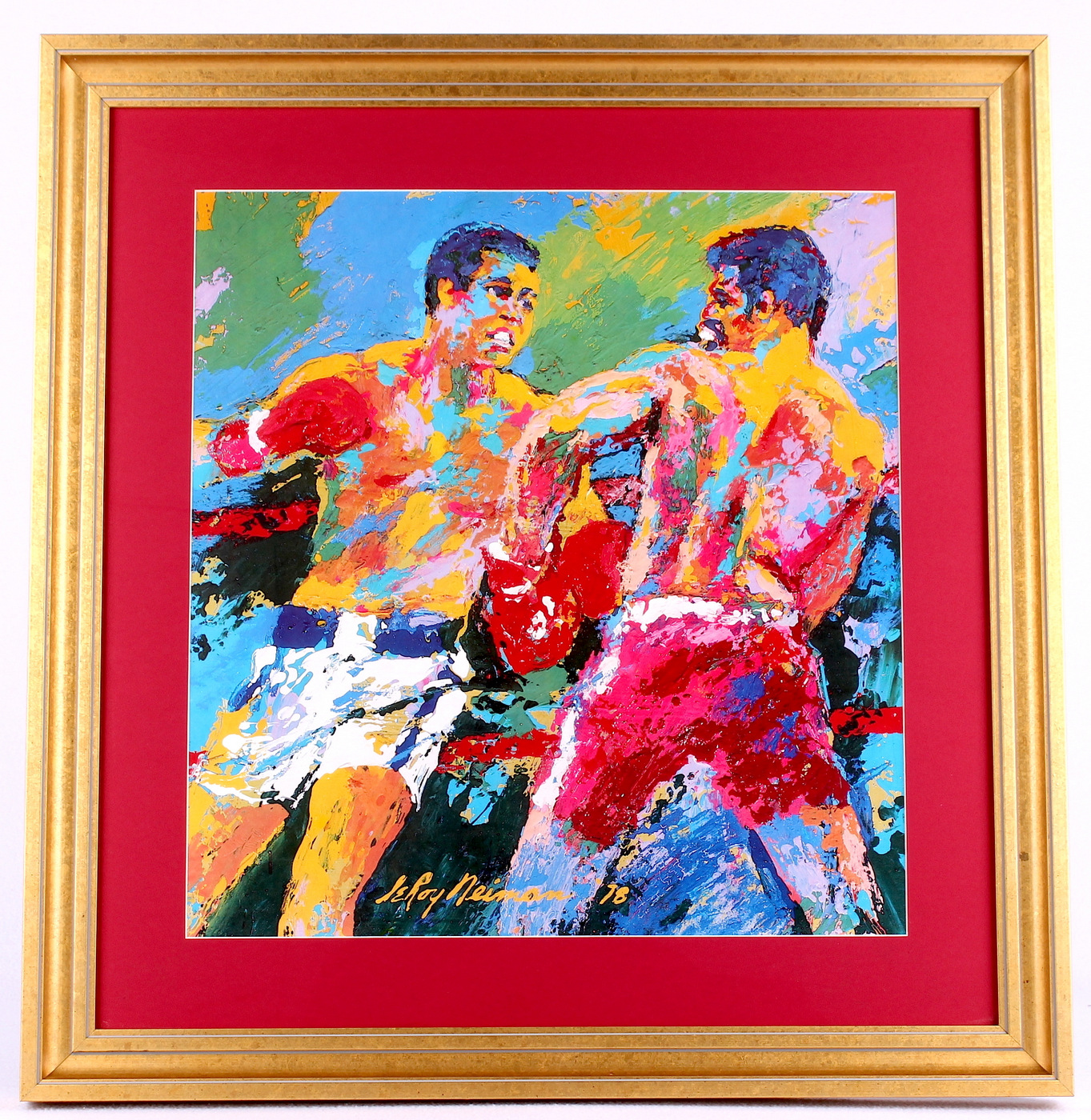LeRoy Neiman "Muhammad Ali vs. Leon Spinks" 1978 World Heavyweight Championship 24x25 Custom Framed Print Display