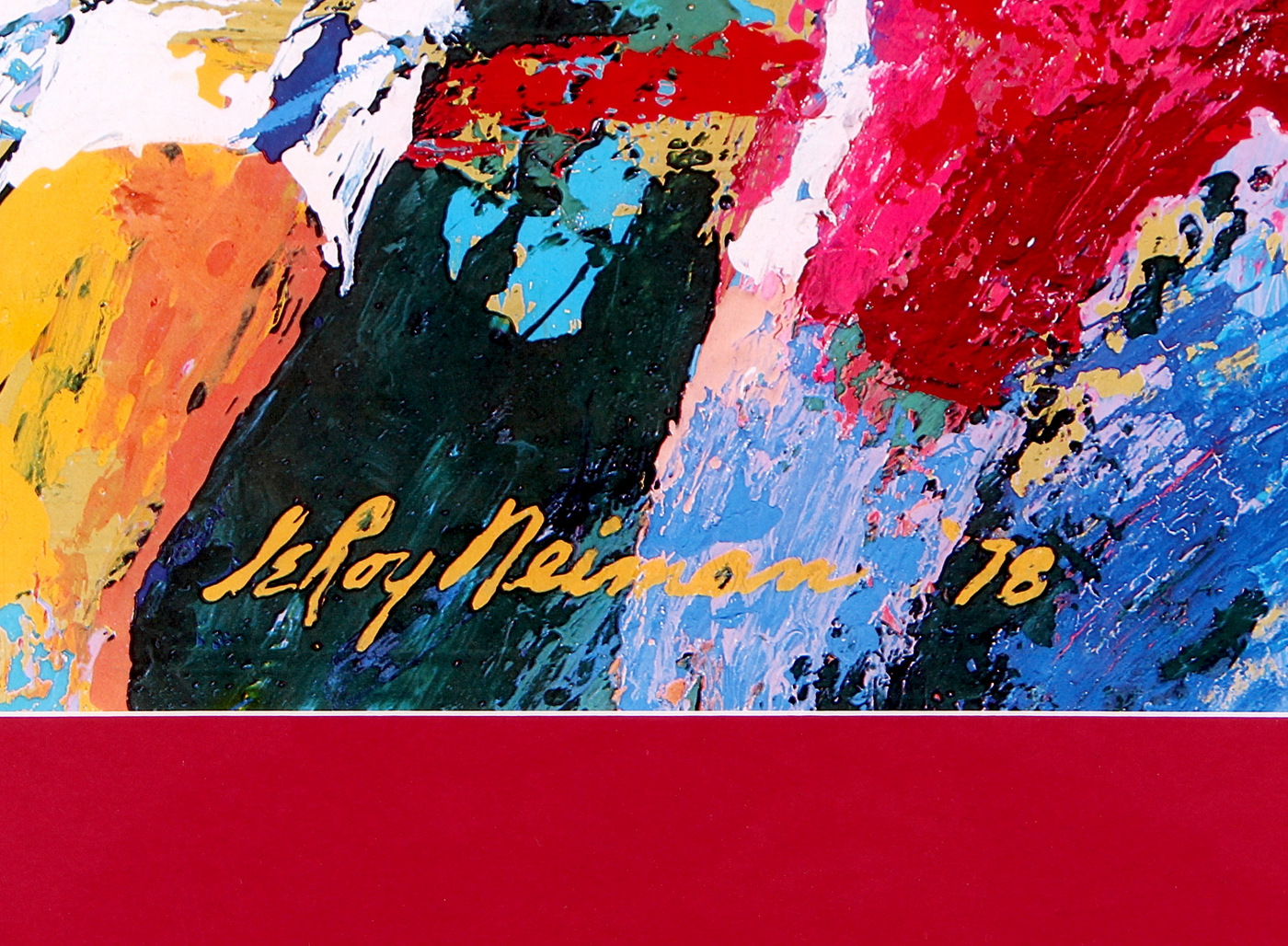 Custom framed display measures 24" x 25" in size. Features a print from LeRoy Neiman (D 2012). Please see photos for more details regarding the frame.