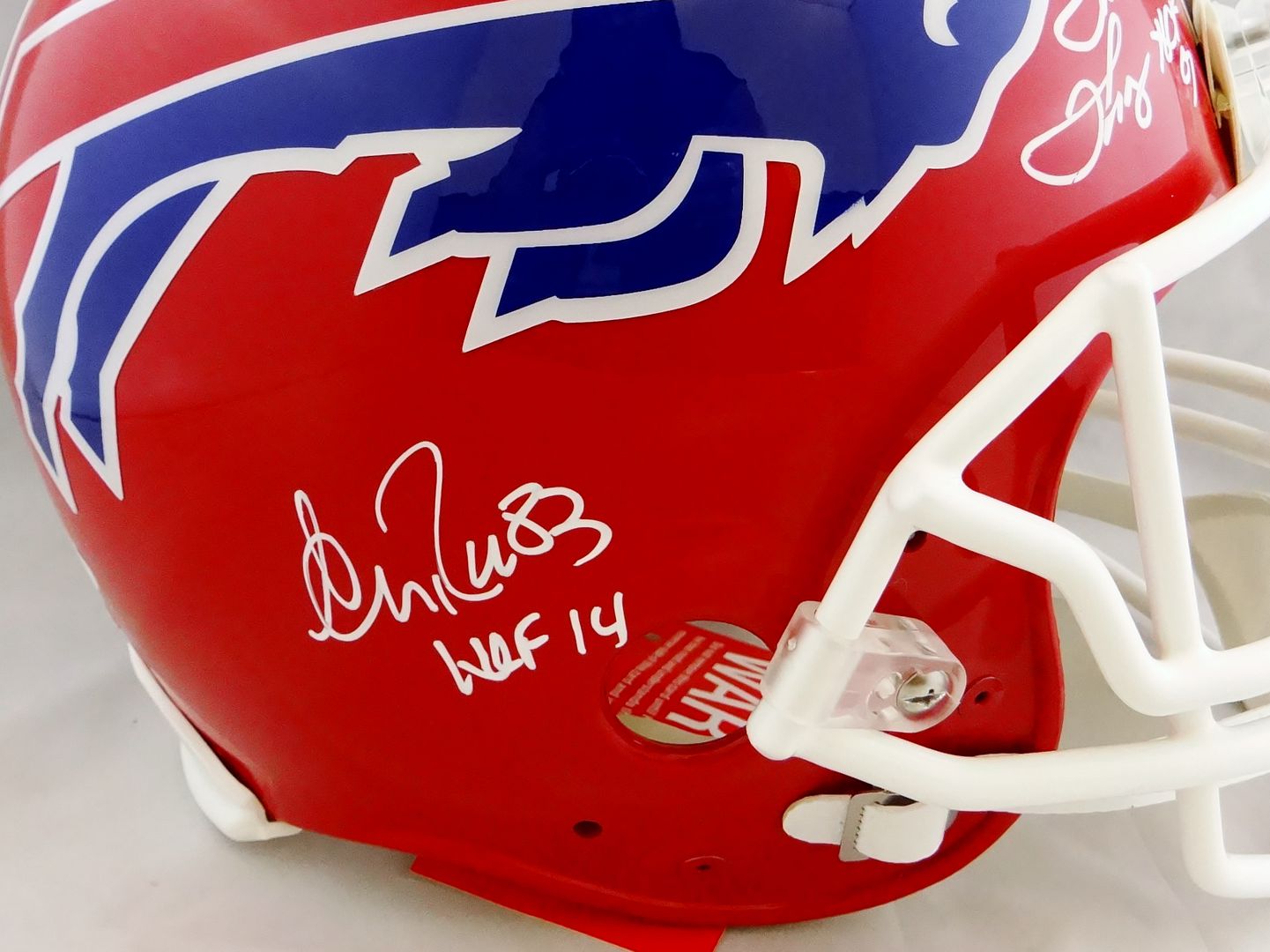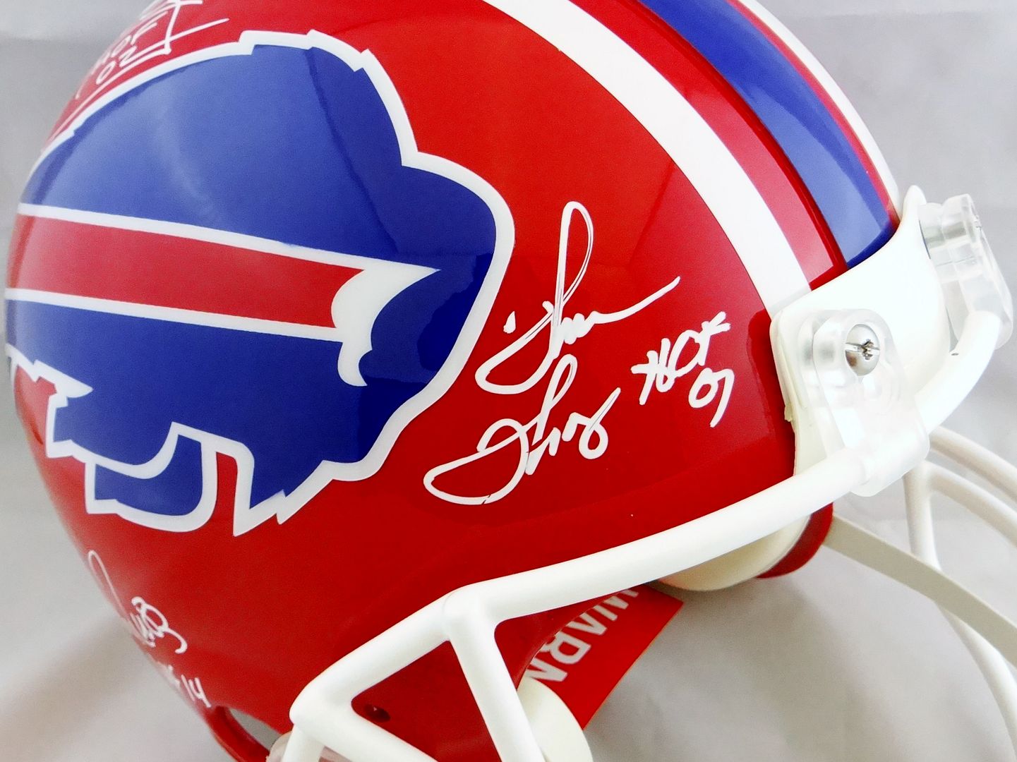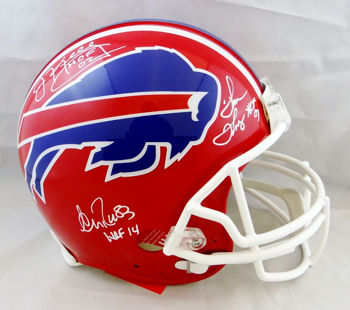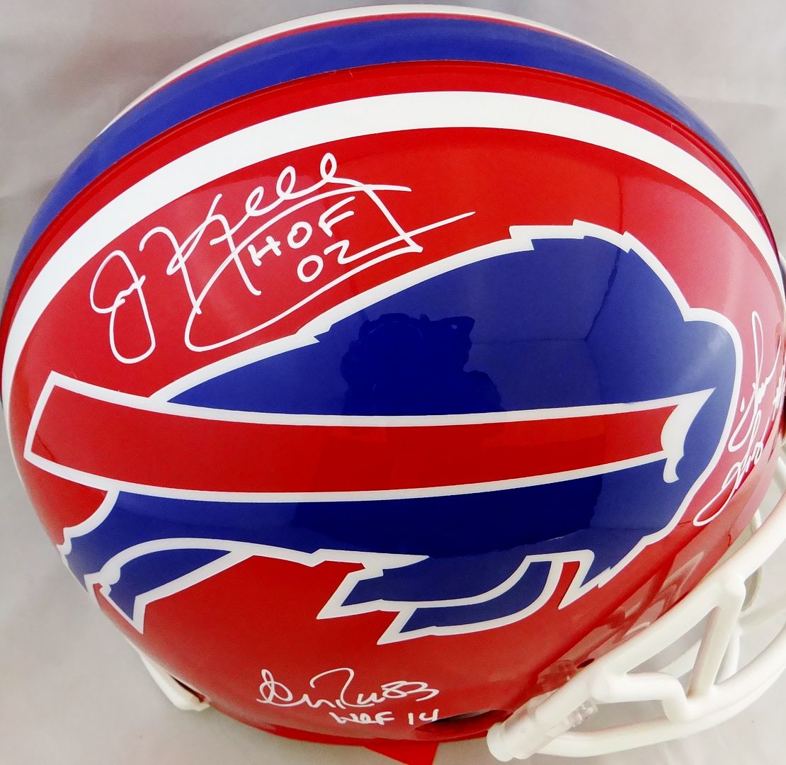Riddell Buffalo Bills full-size authentic on-field helmet. Hand-signed and inscribed by Jim Kelly (HOF), Thurman Thomas (HOF), and Andre Reed (HOF).