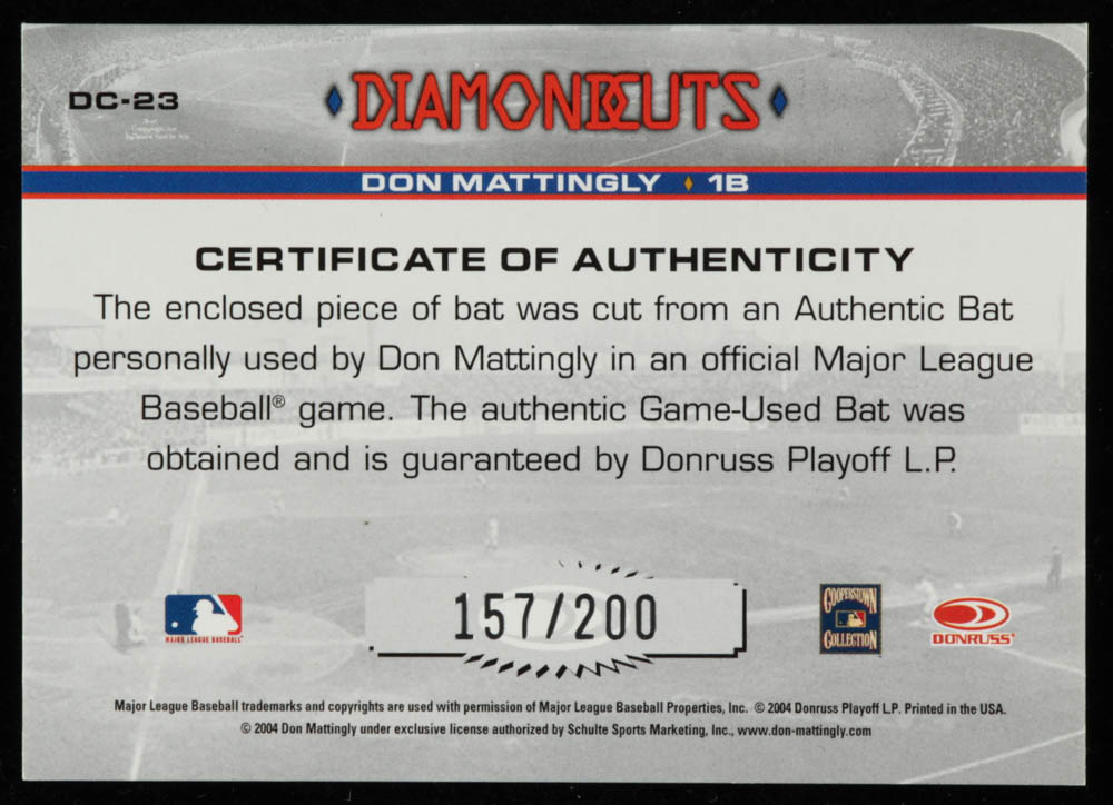 Don Mattingly 2004 Studio Diamond Cuts Material Bat #23
