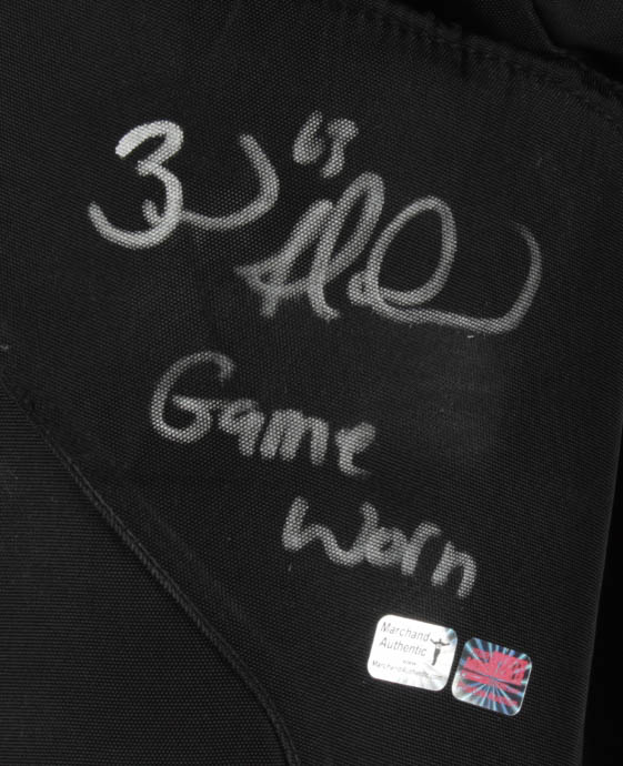 X-Stretch game-worn hockey pants. Everything sewn on. Hand-signed by Brad Marchand (Boston Bruins).