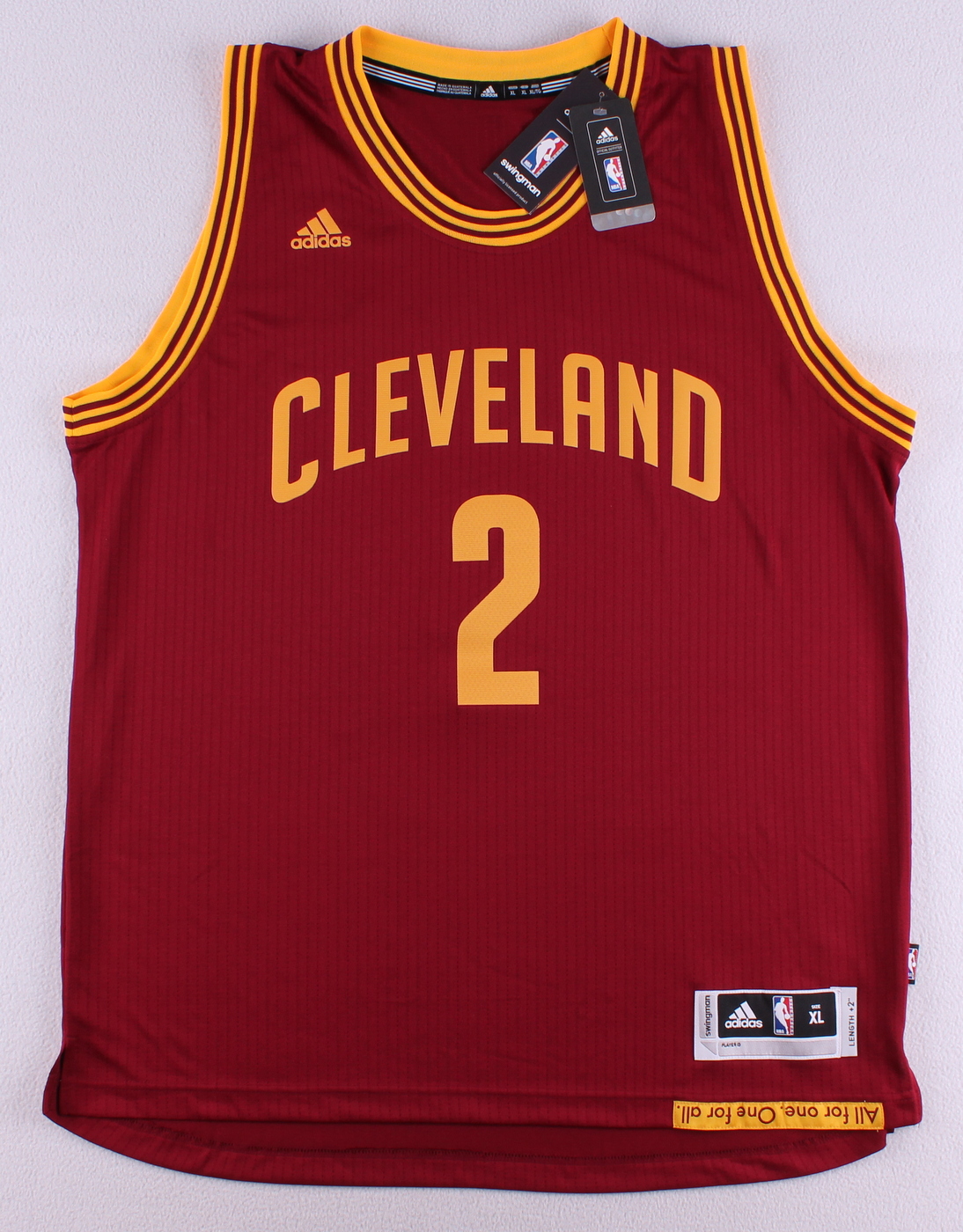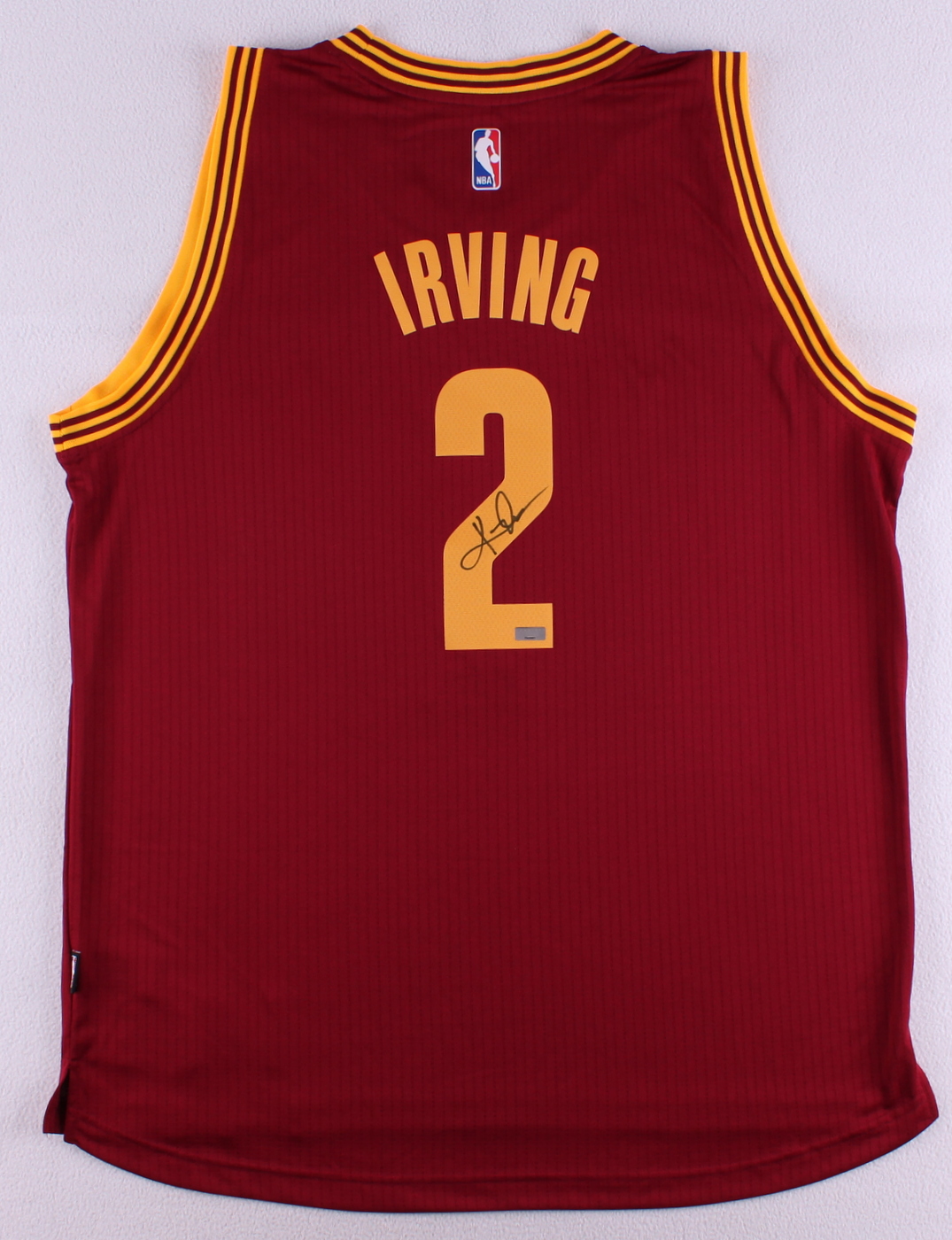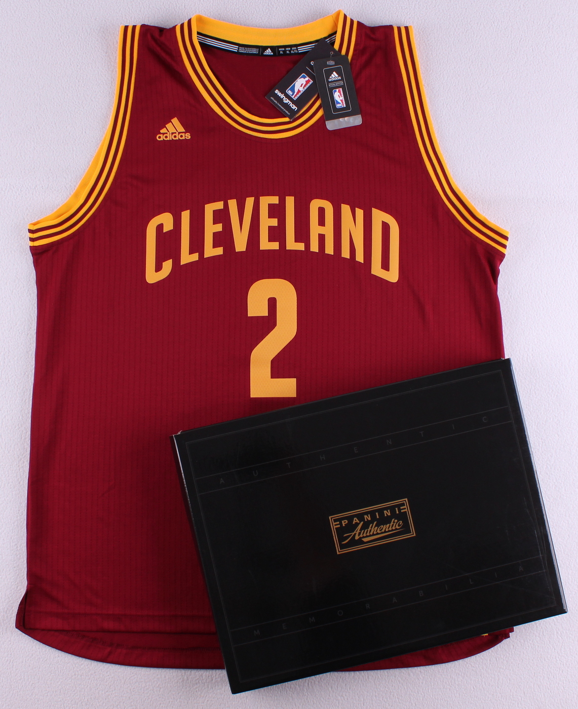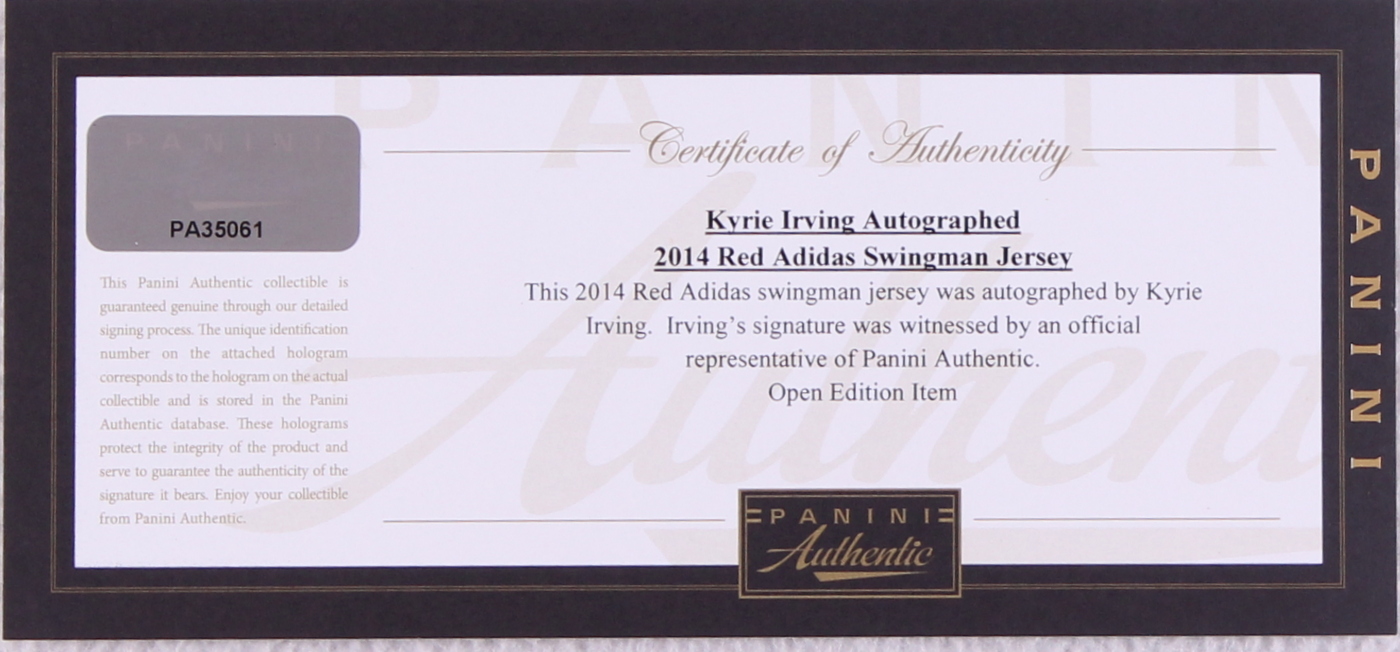 Adidas Swingman jersey. Everything printed on, size XL. Hand-signed in black felt-tip pen by Kyrie Irving.